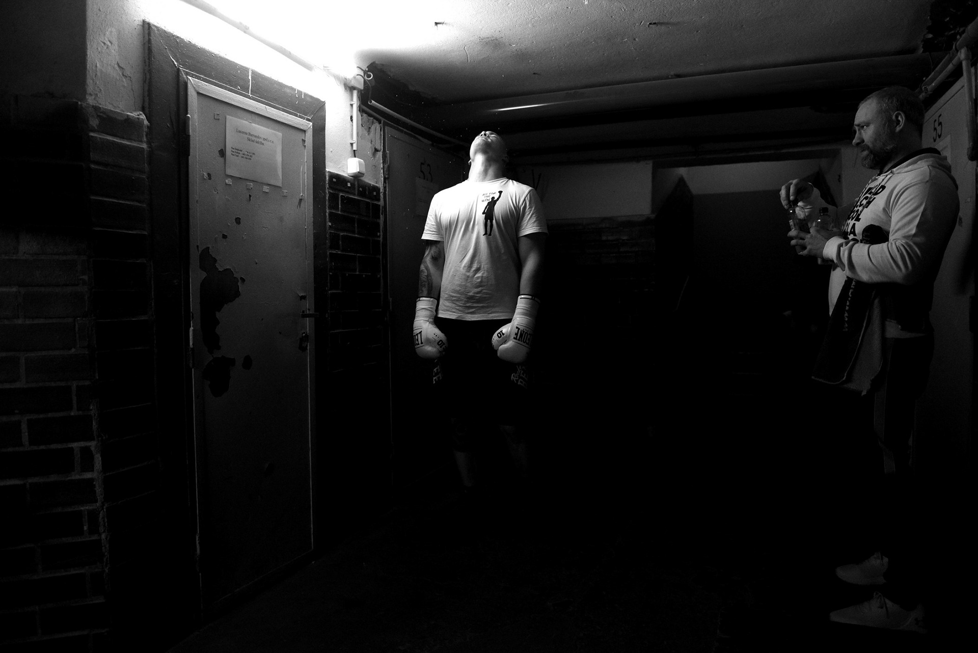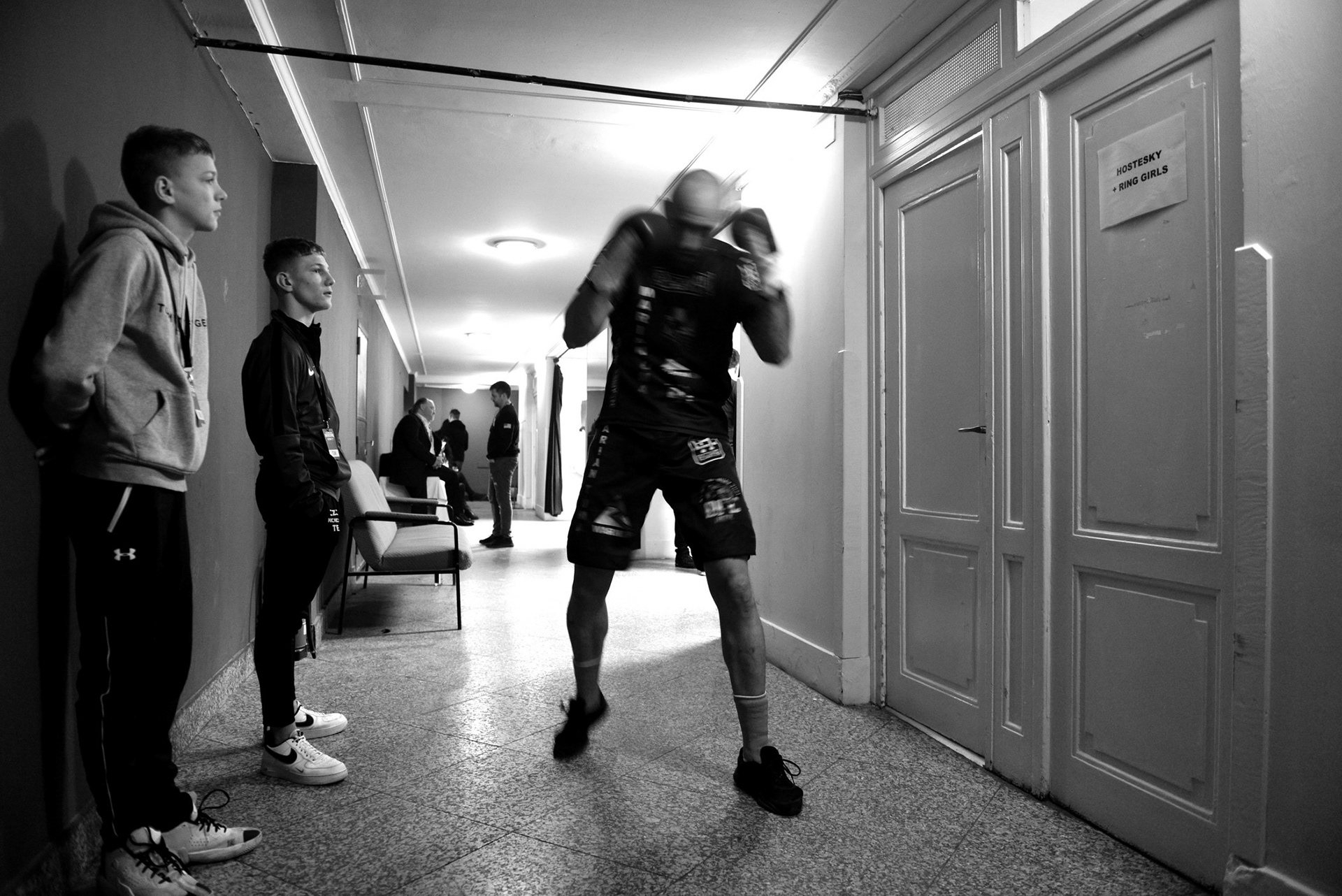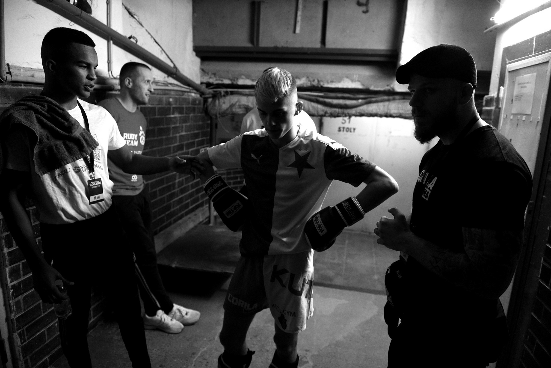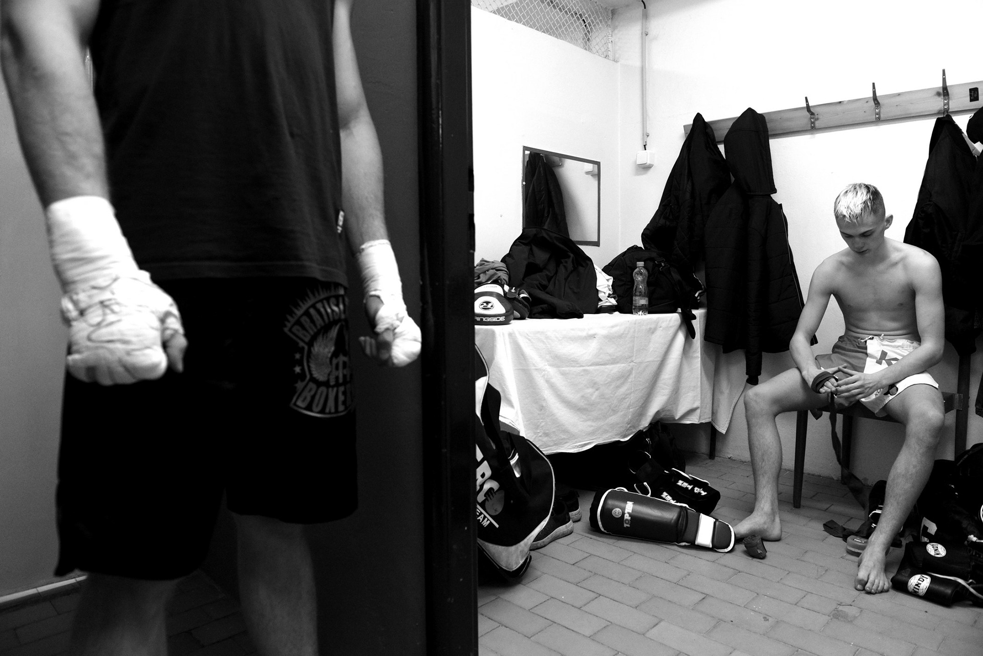 The underground locker rooms of the historic Lucerne Palace also have their own charm during boxing matches.