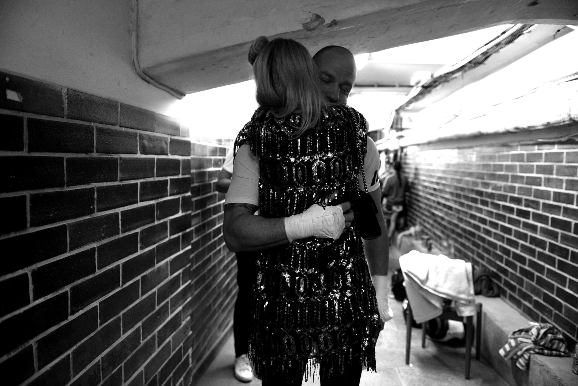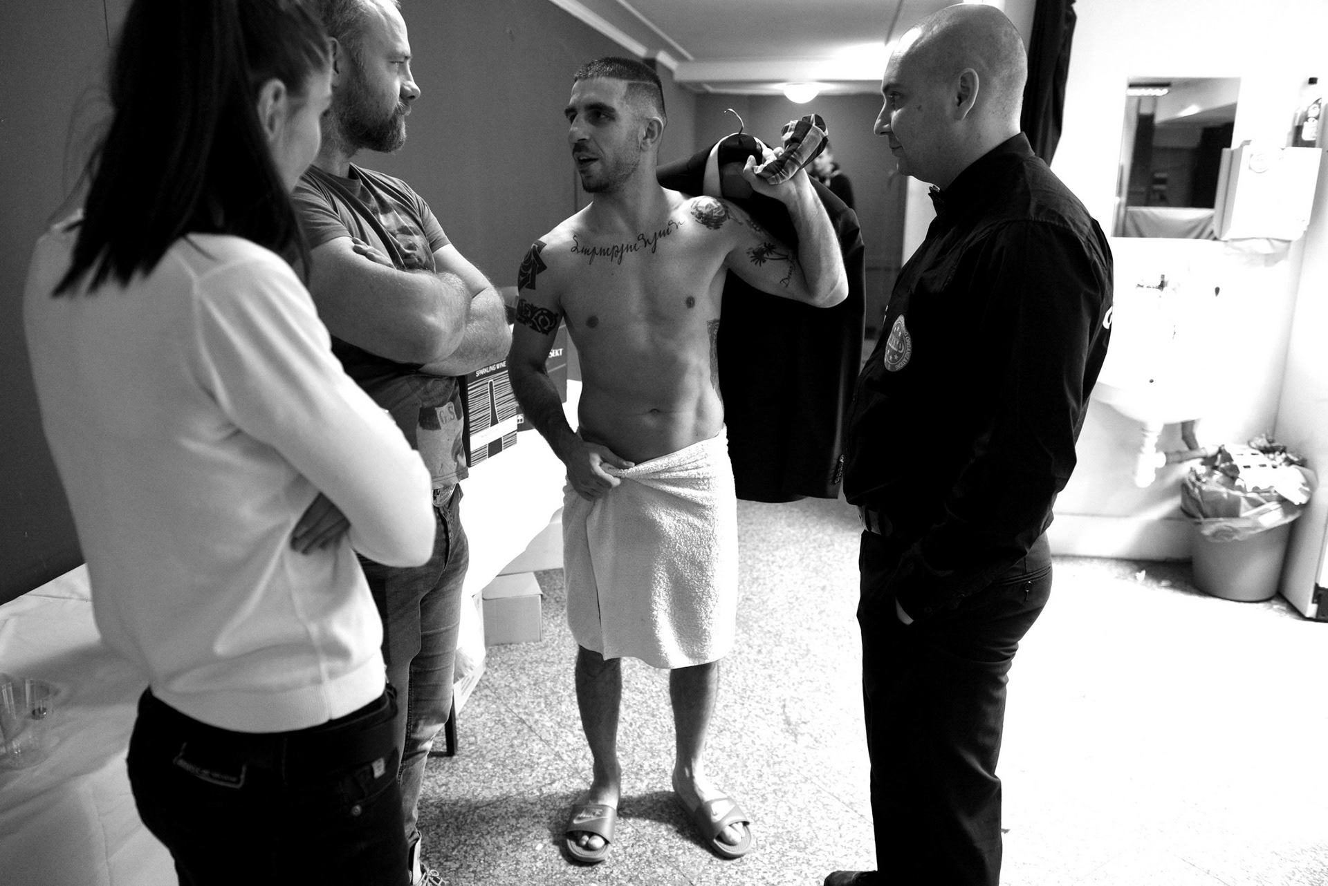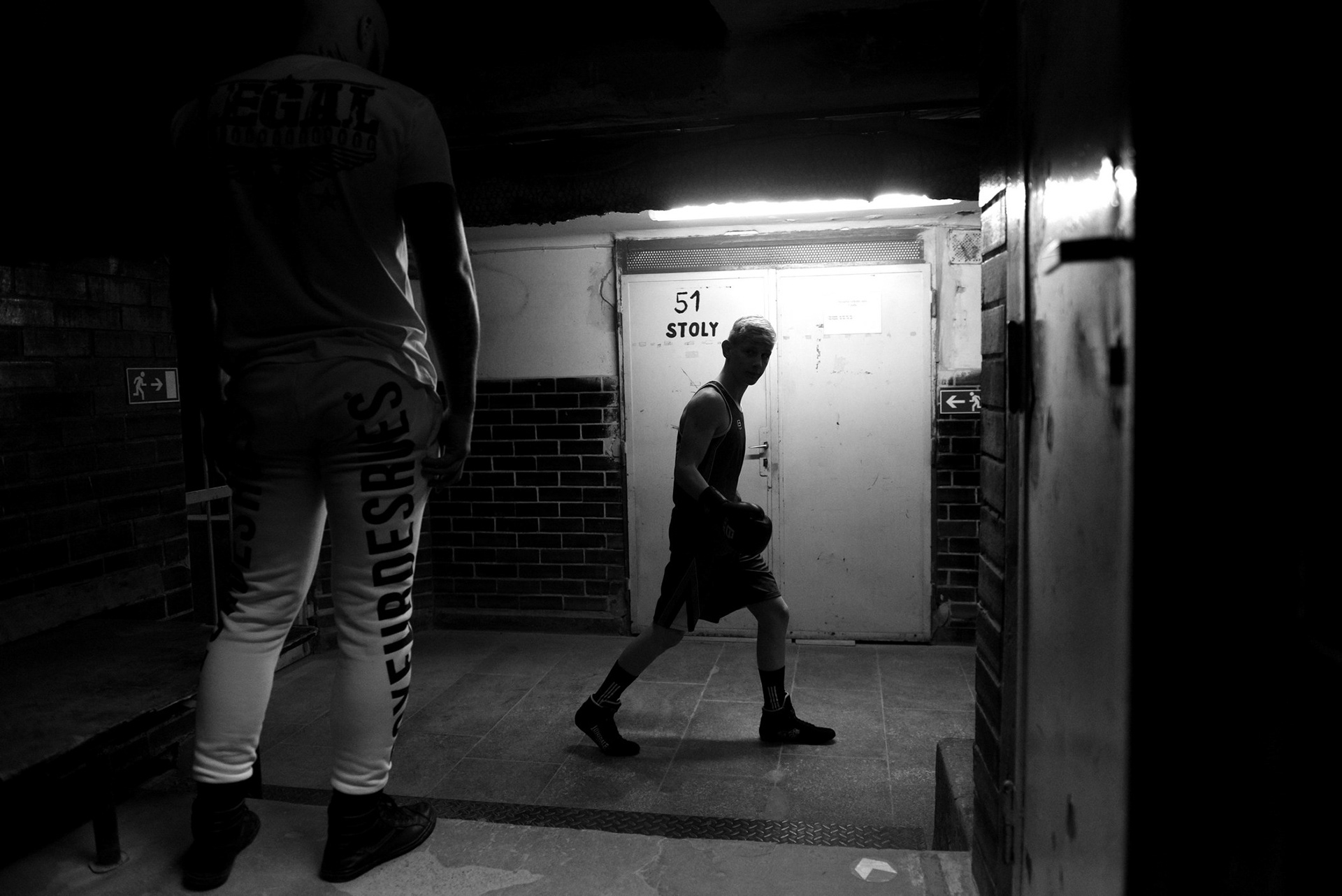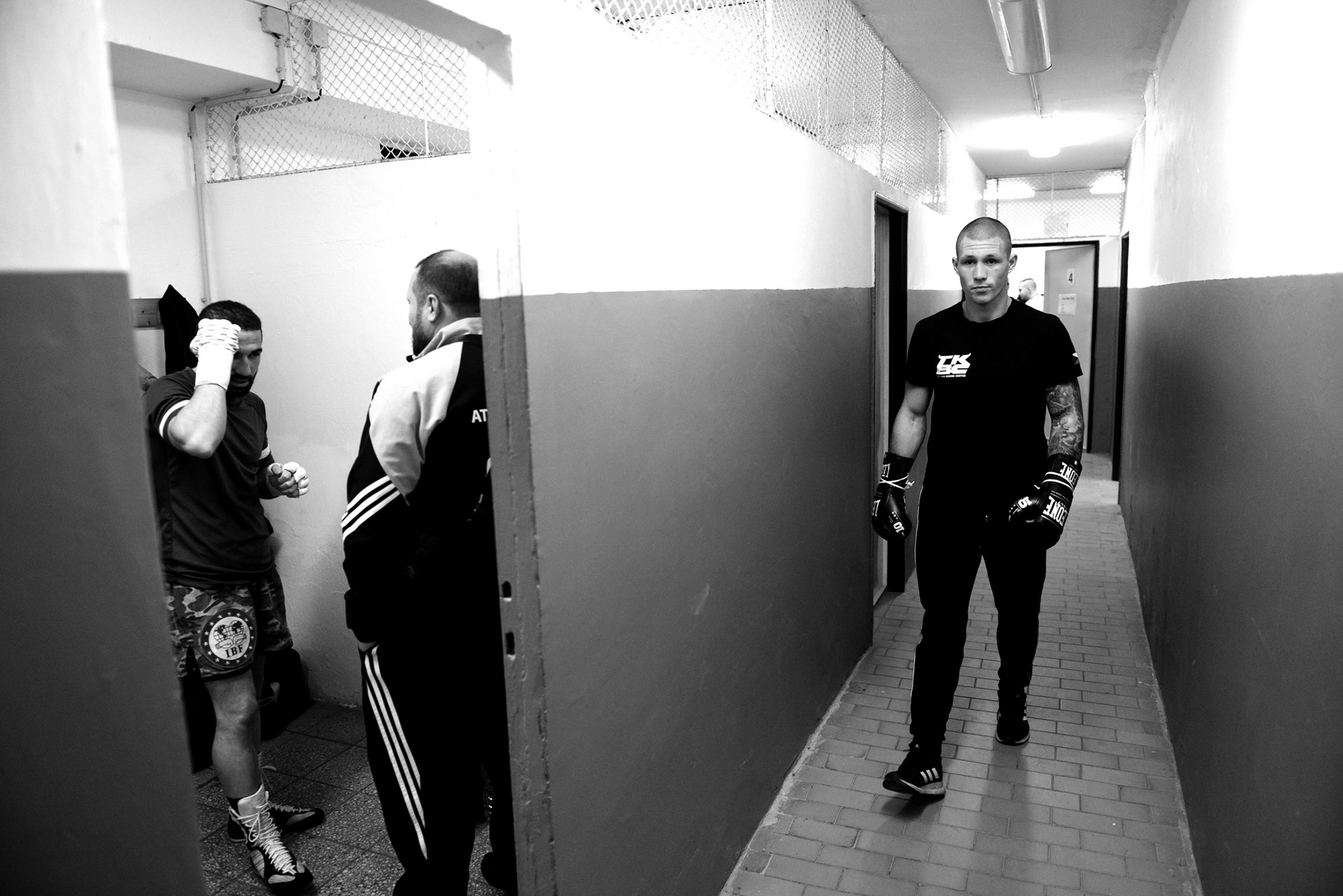 The underground locker rooms of the historic Lucerne Palace also have their own charm during boxing matches.