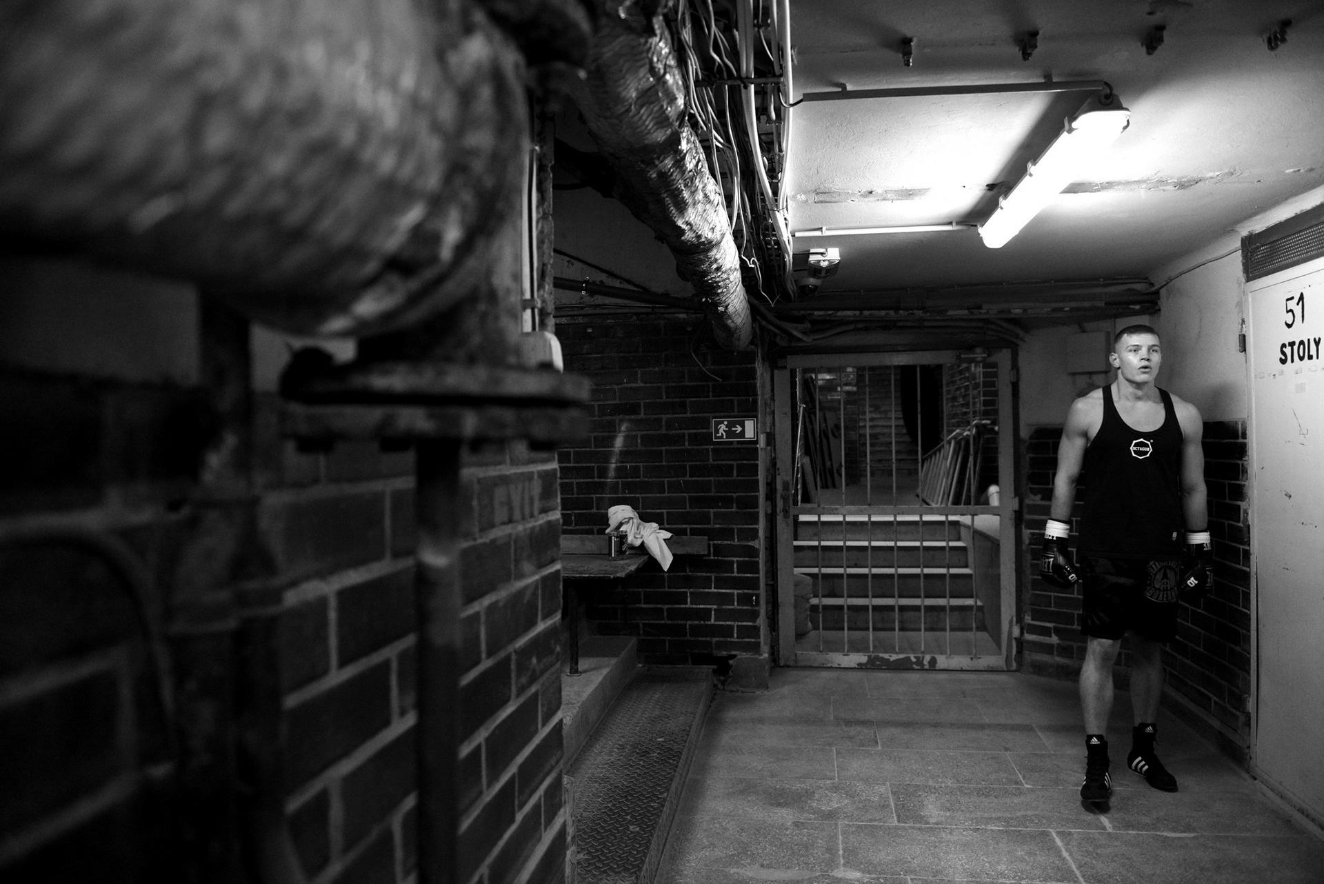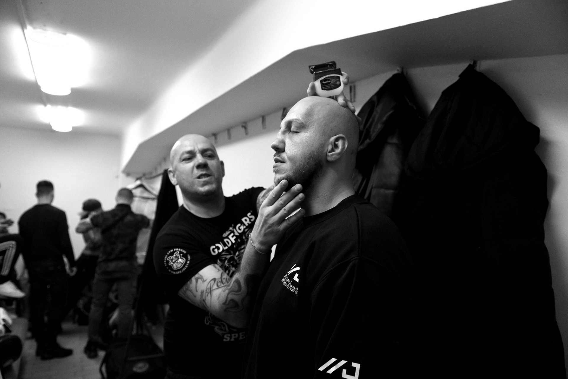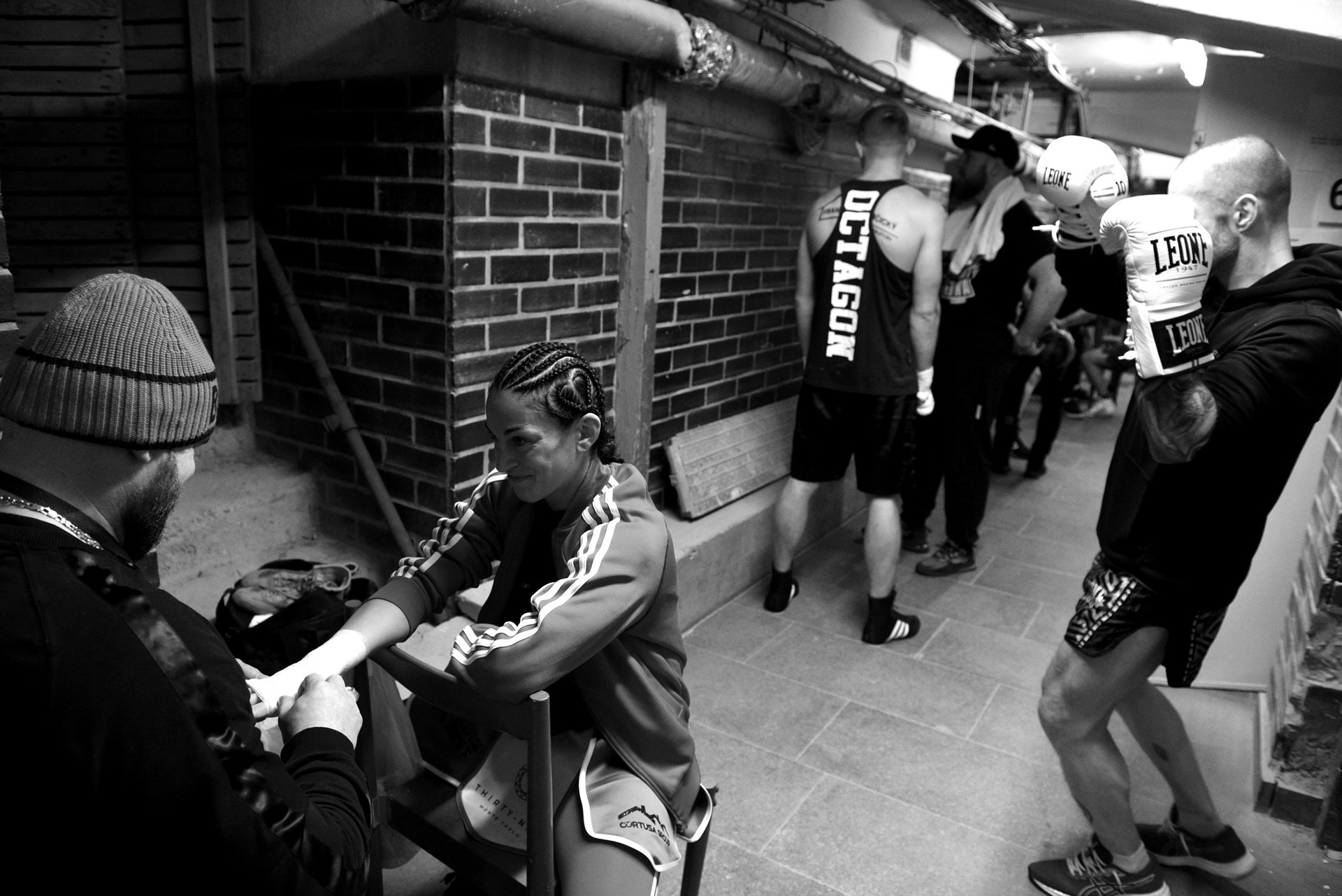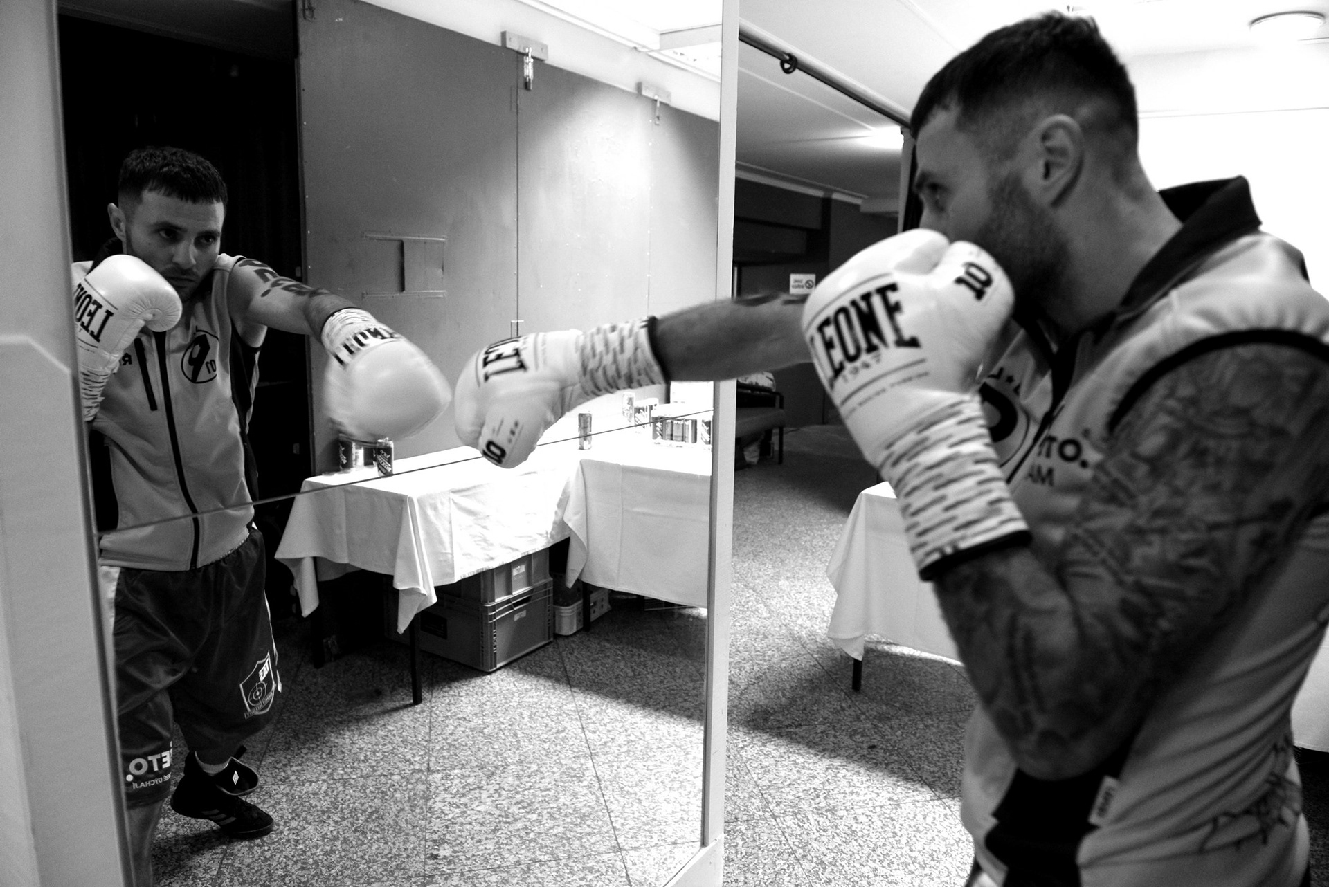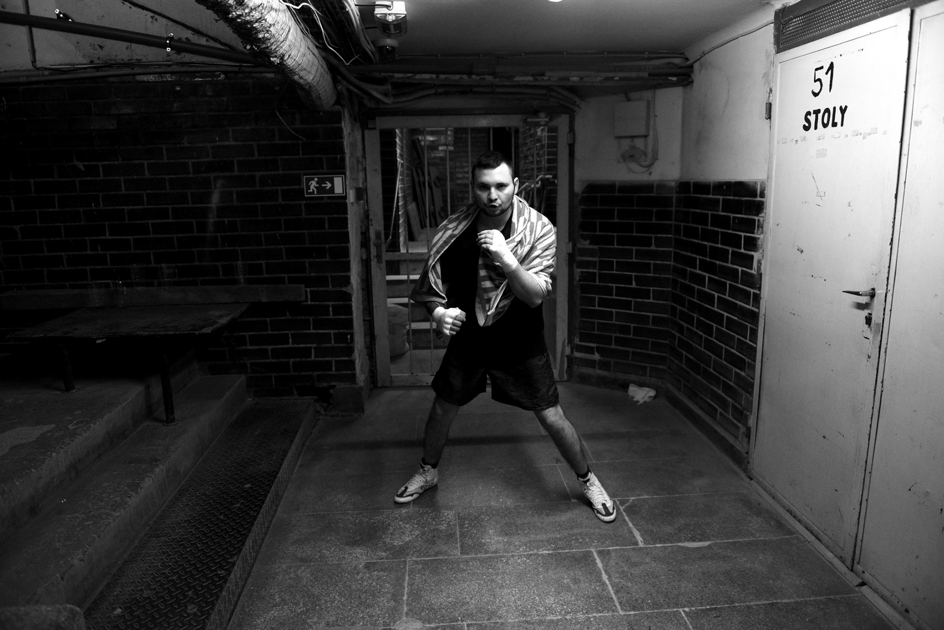 The underground locker rooms of the historic Lucerne Palace also have their own charm during boxing matches.