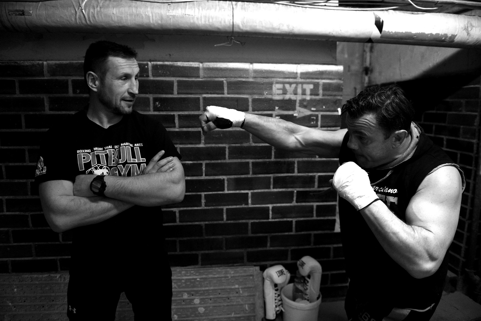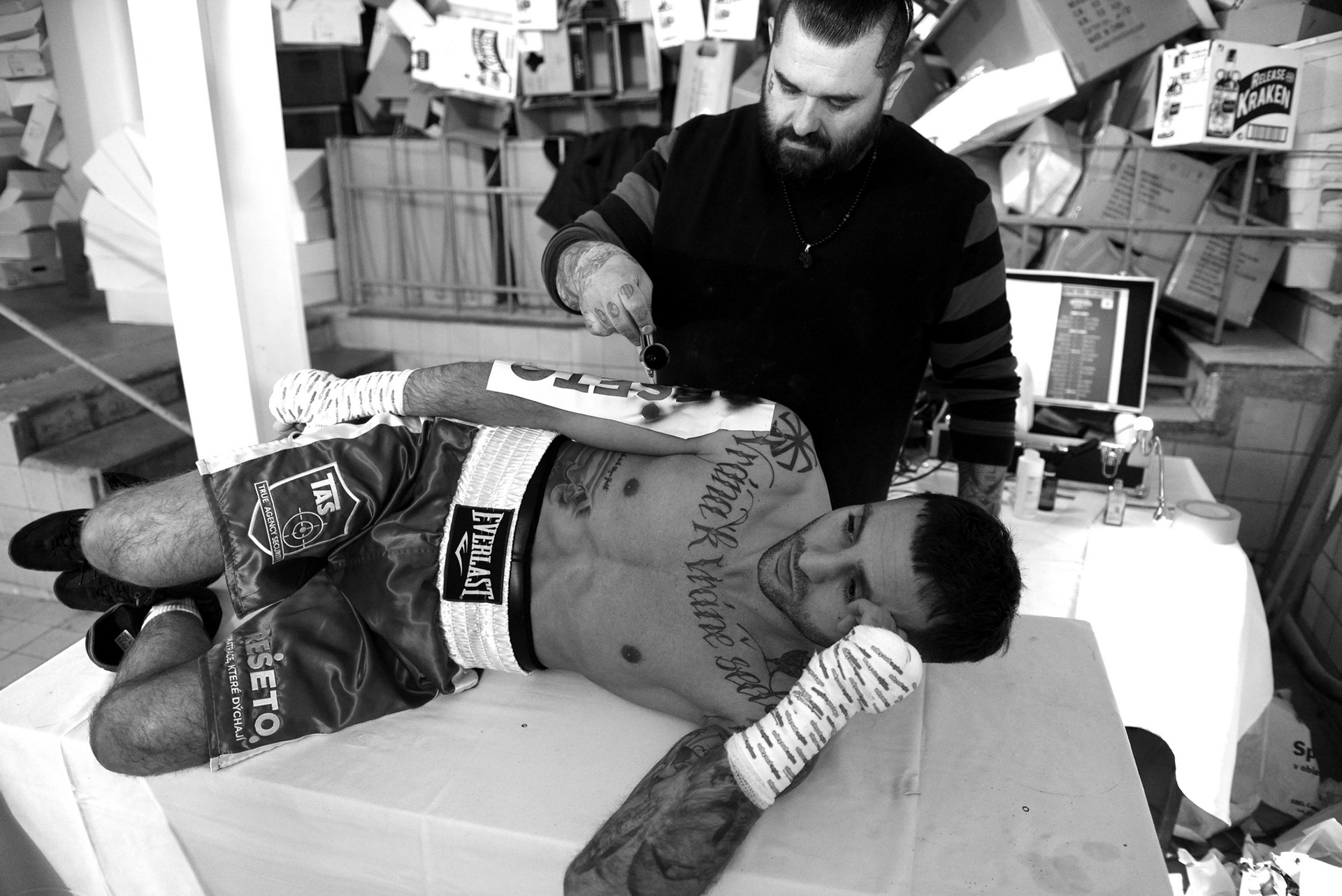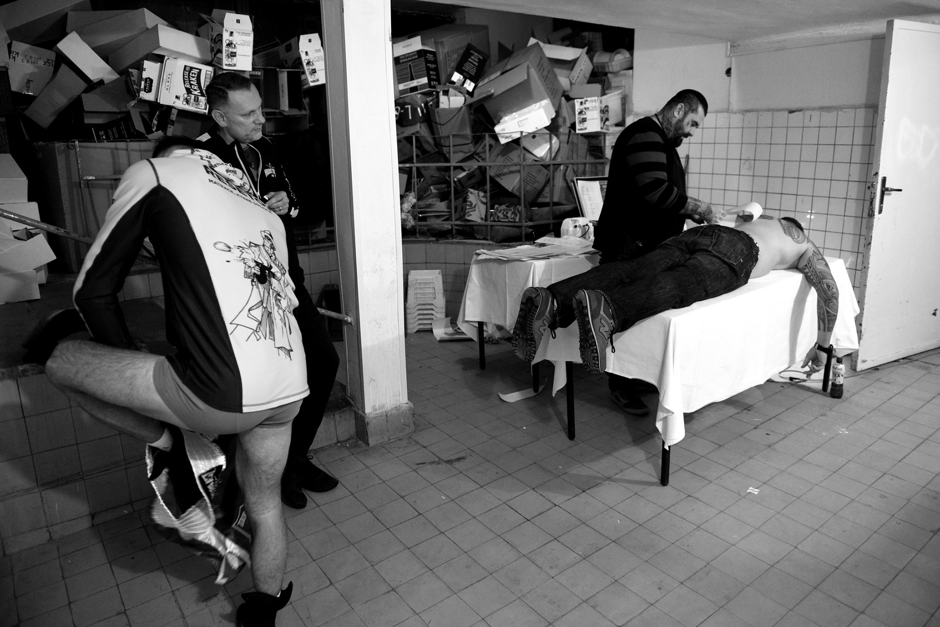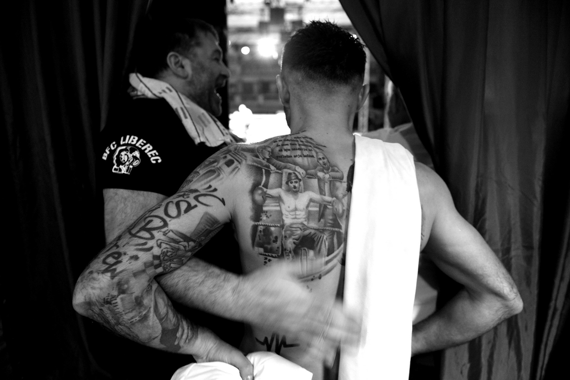 The underground locker rooms of the historic Lucerne Palace also have their own charm during boxing matches.