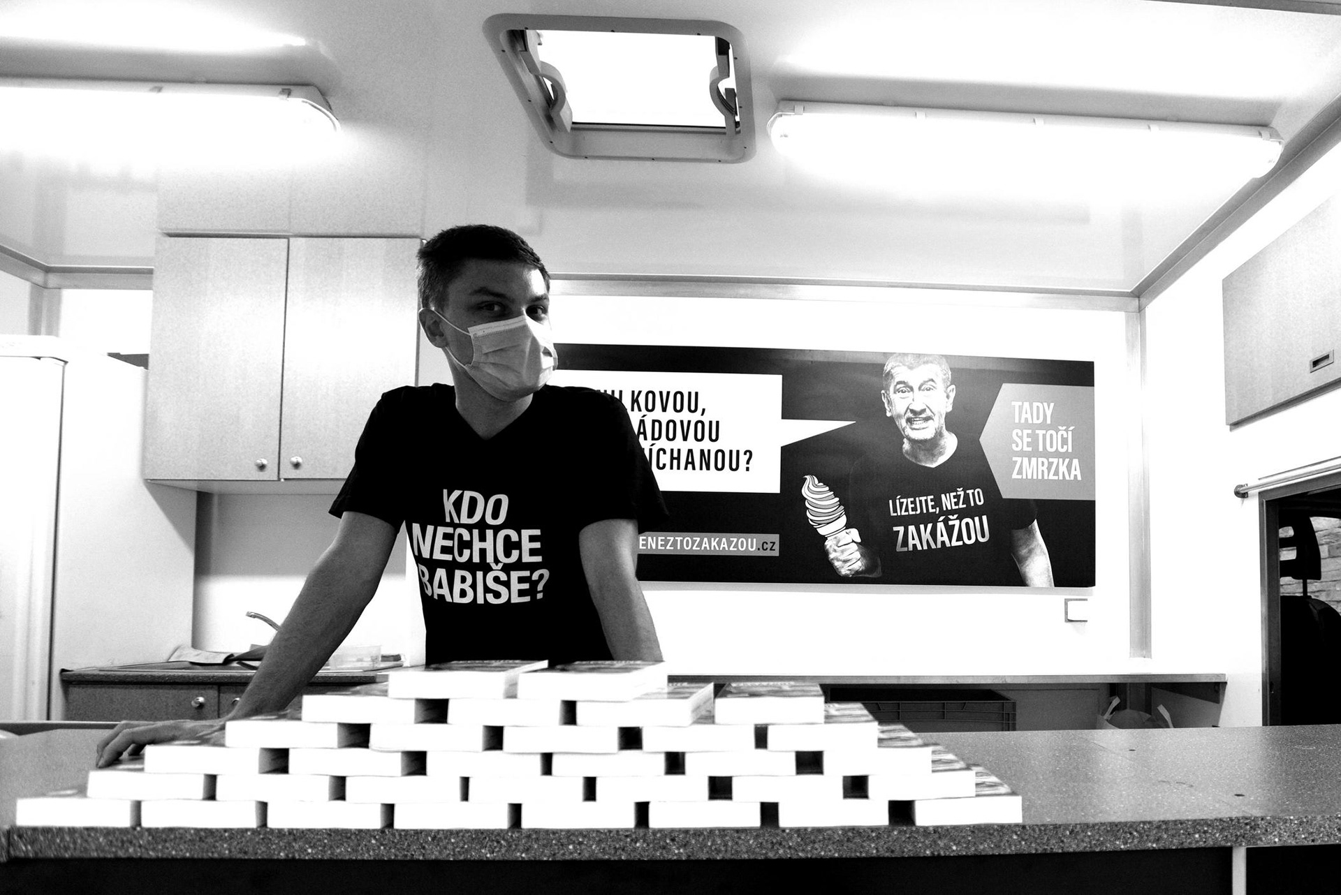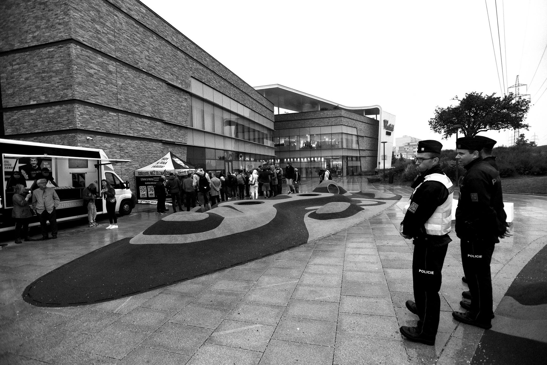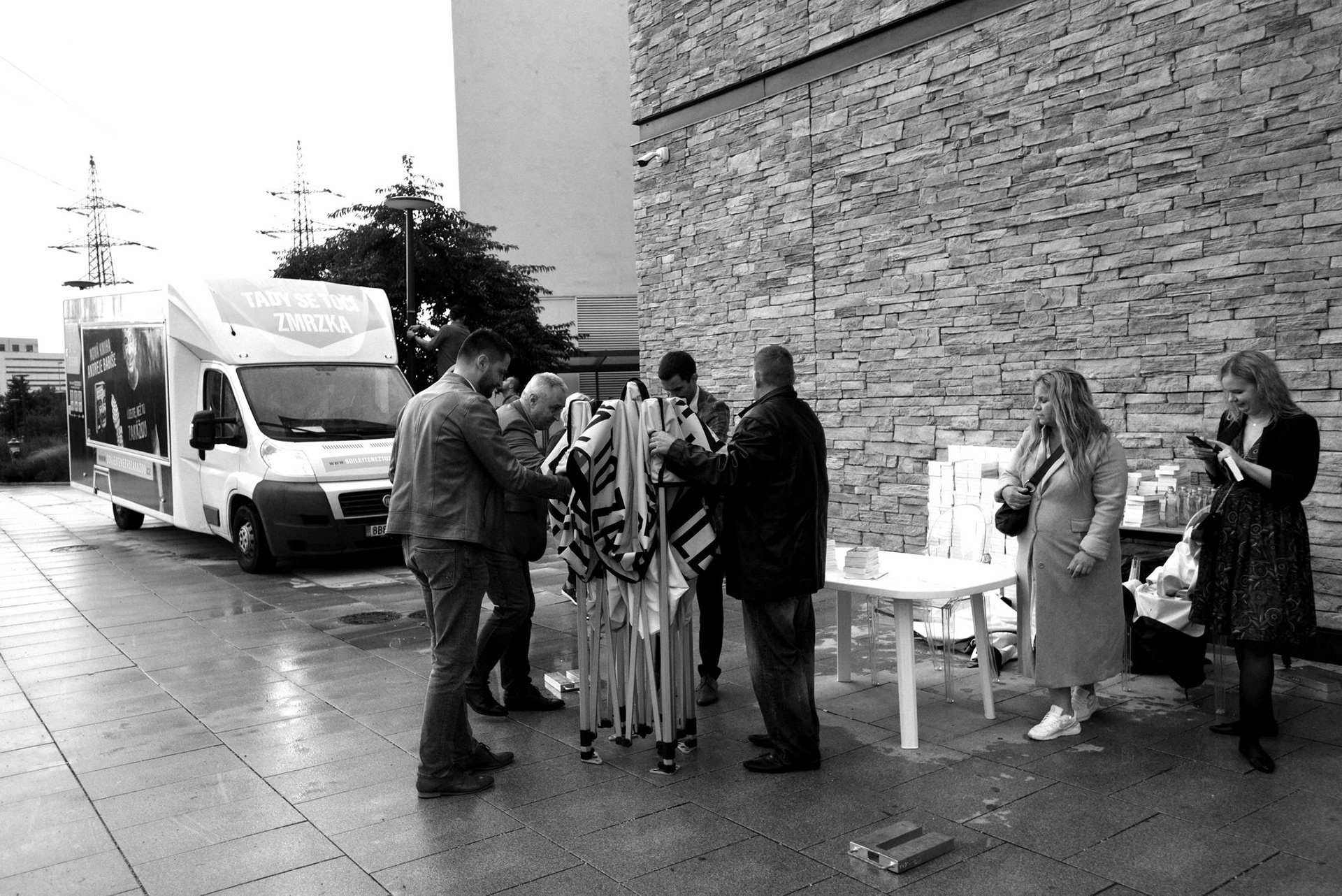 Premier Andrej Babiš, signing his book, attracted only a small group of his followers, almost the same number of his opponents and an equally large group of security men. The event was closed prematurely due to rain and low attendance