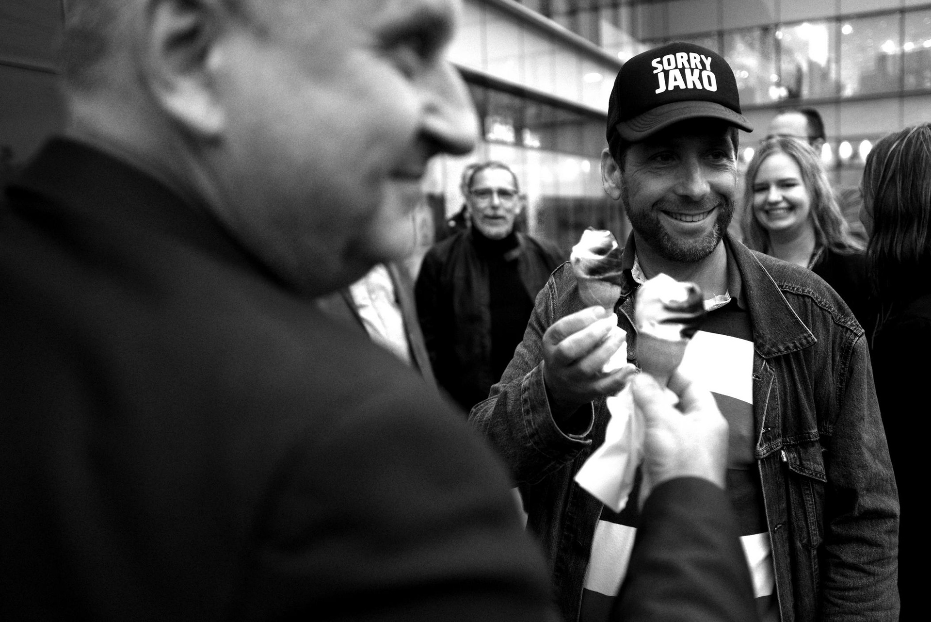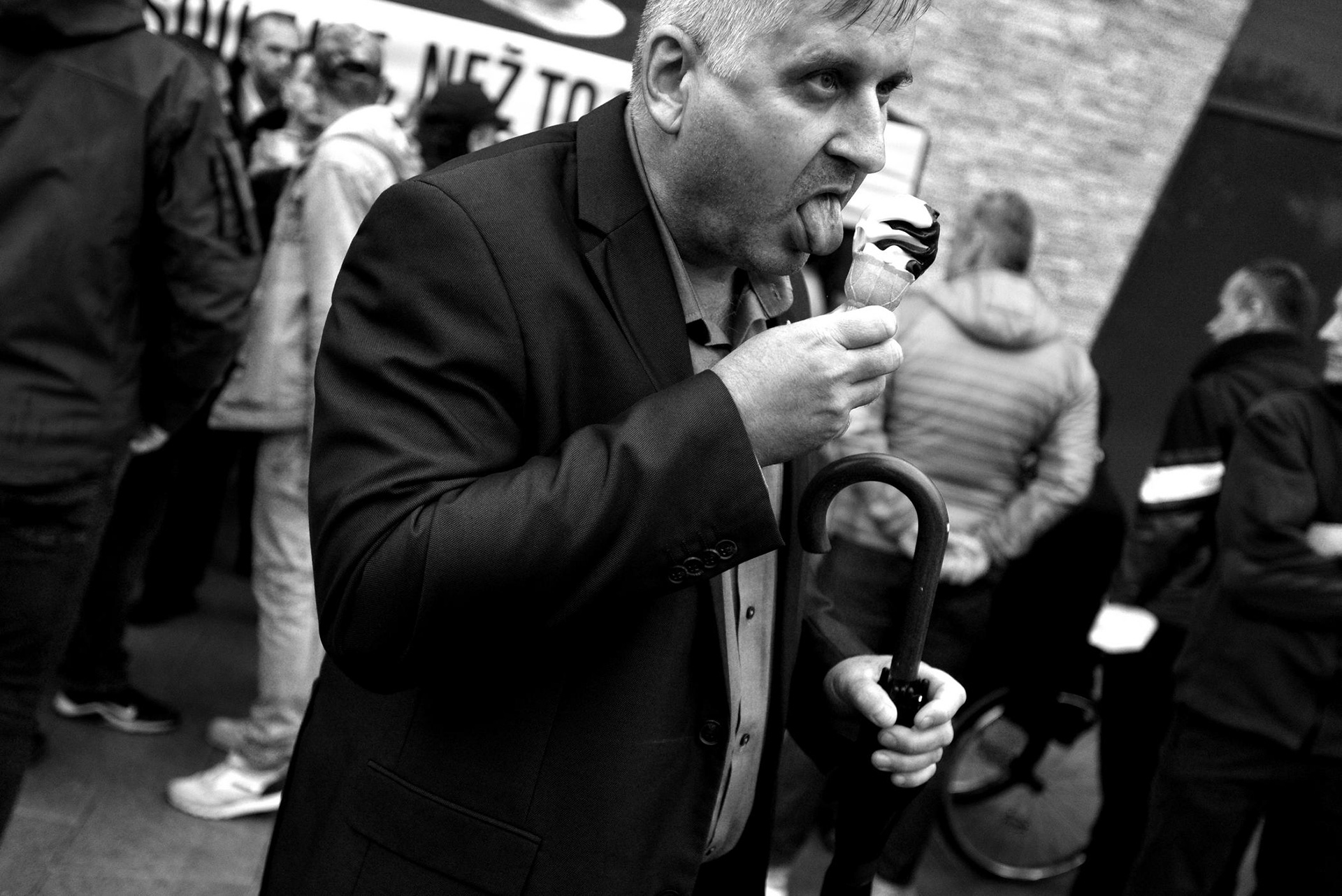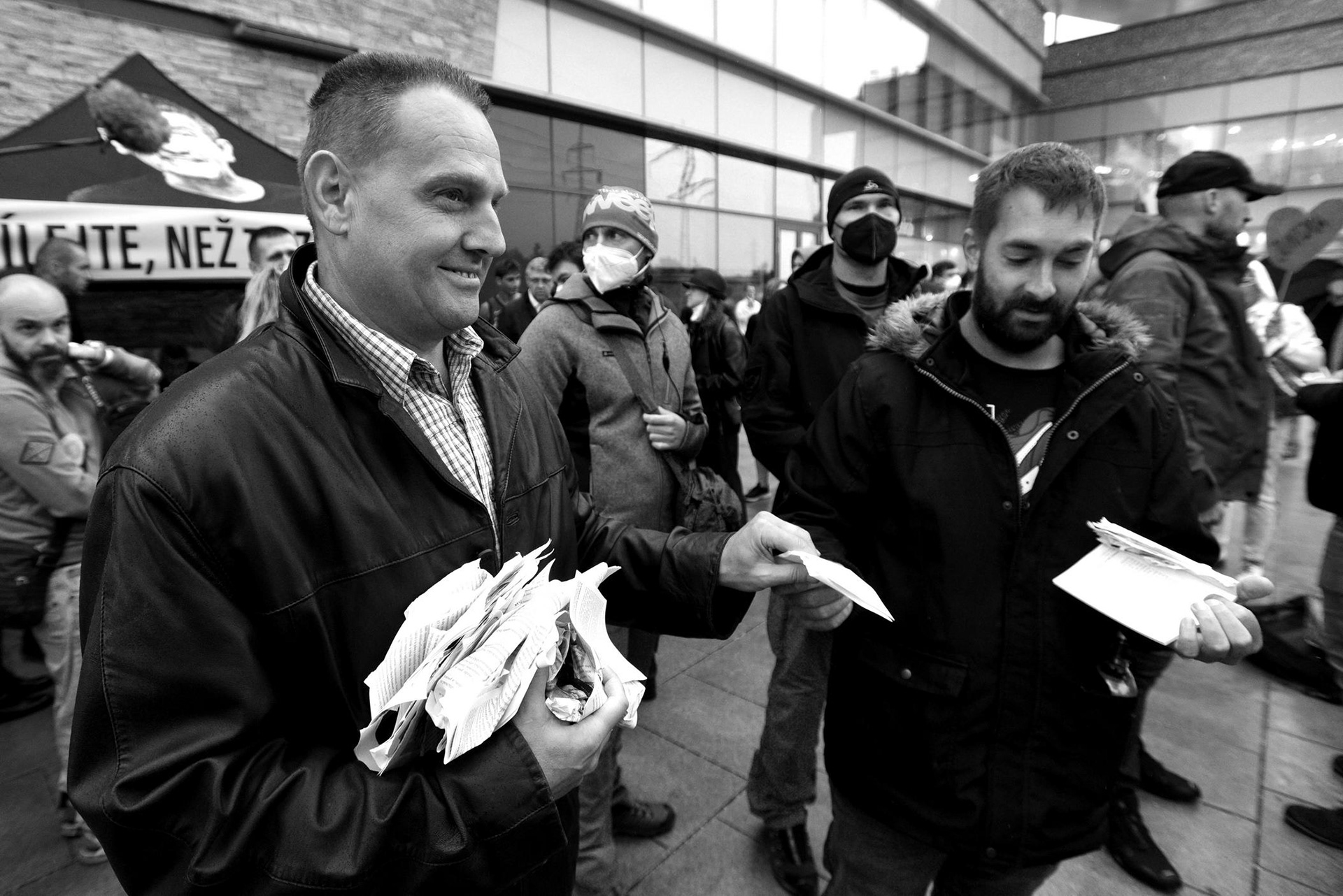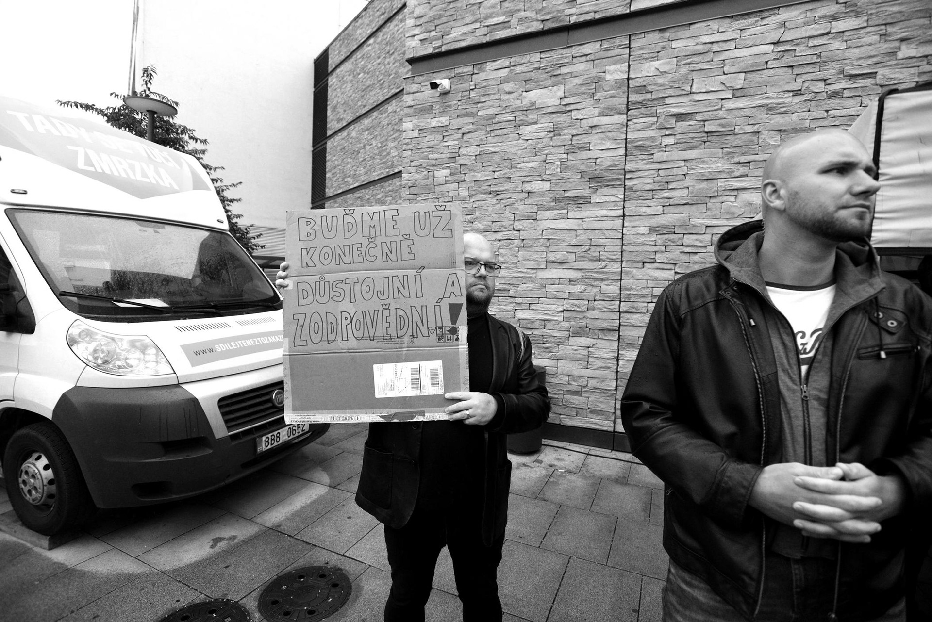 Premier Andrej Babiš, signing his book, attracted only a small group of his followers, almost the same number of his opponents and an equally large group of security men. The event was closed prematurely due to rain and low attendance