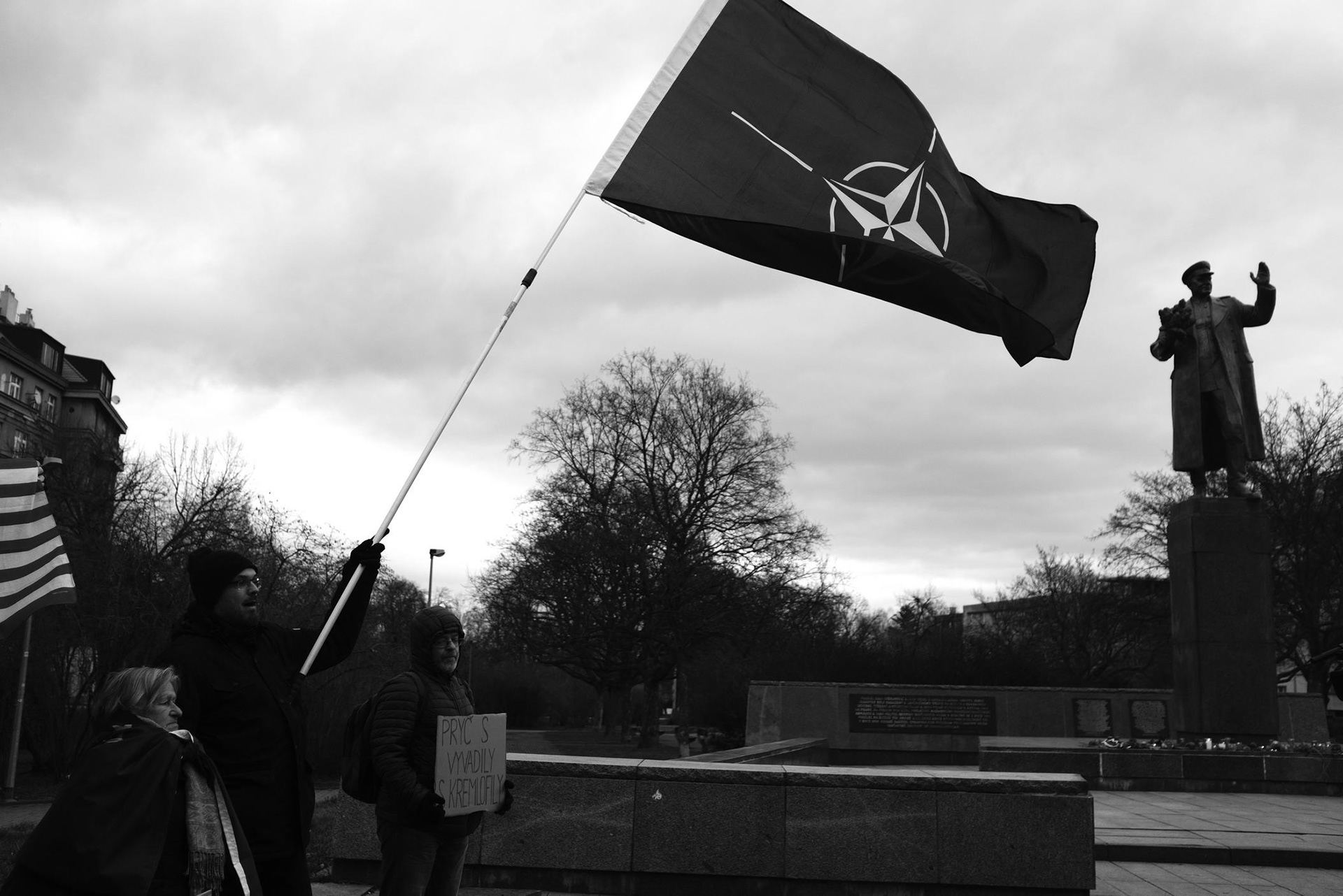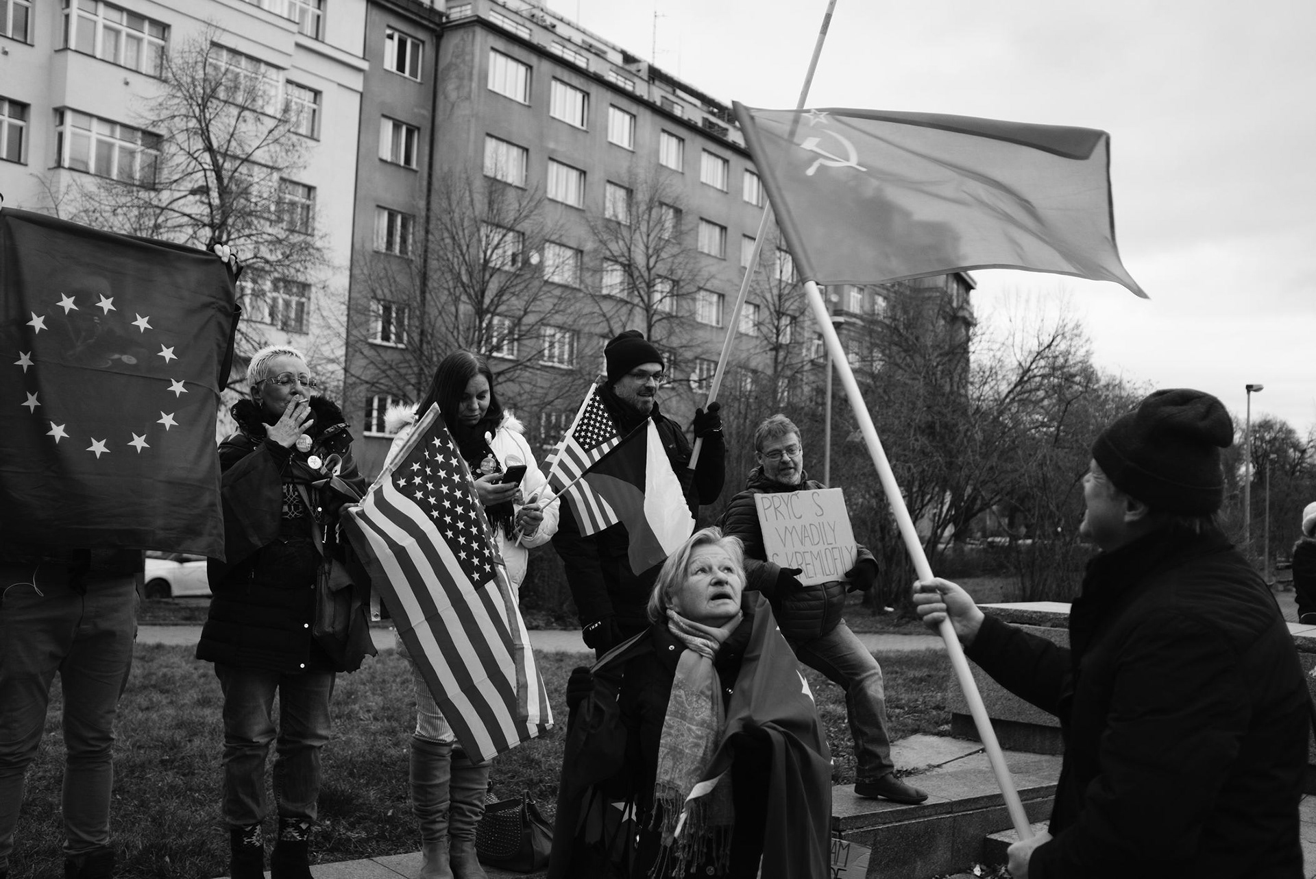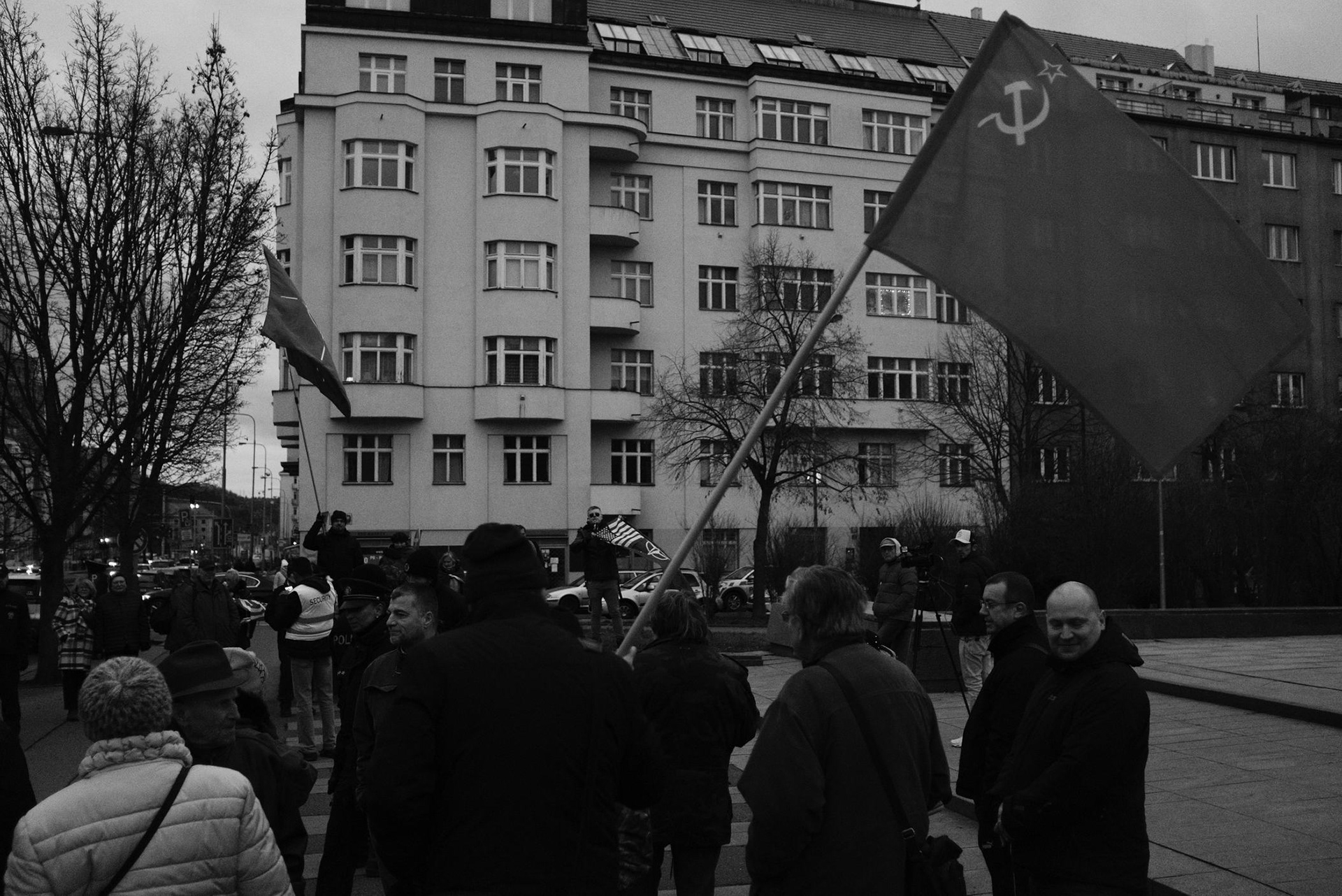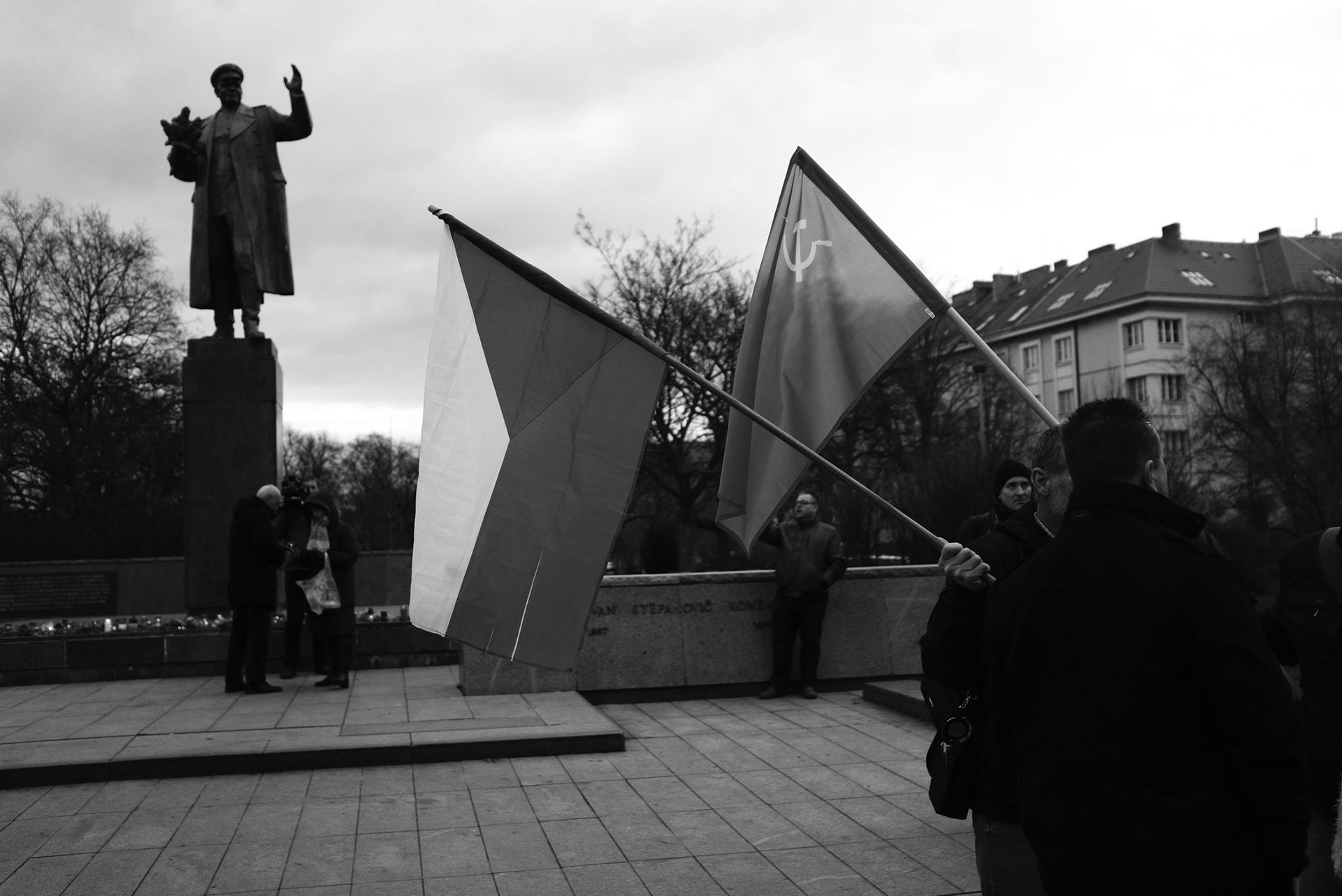 People demanding the removal of the statue of the controversial Soviet Marshal Ivan Konev and his supporters met in front of the Marshal’s statue in Prague on Dec 28, 2019 on the anniversary of the Marshal’s birth.