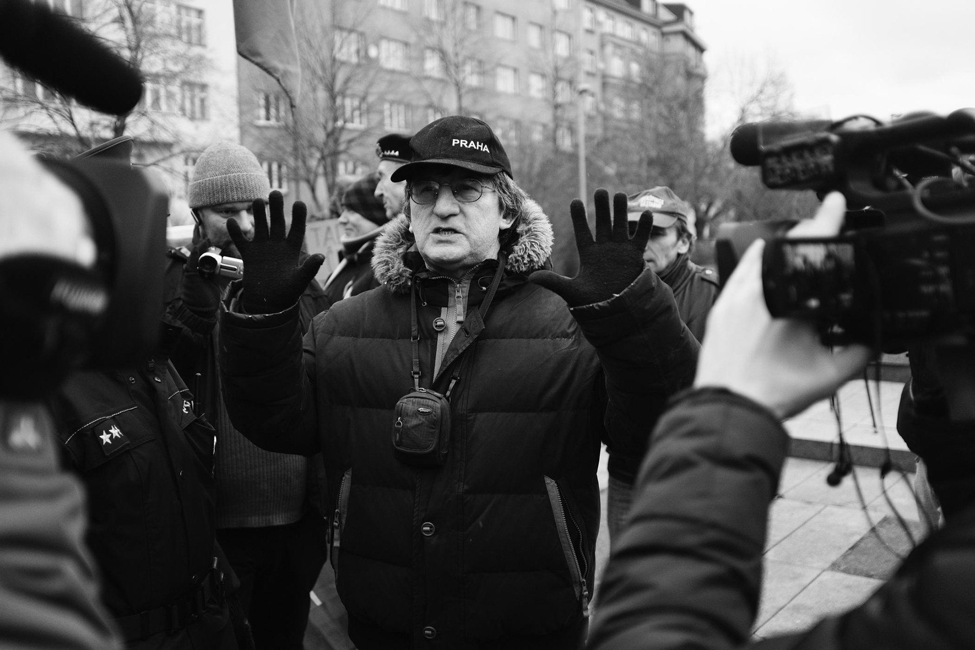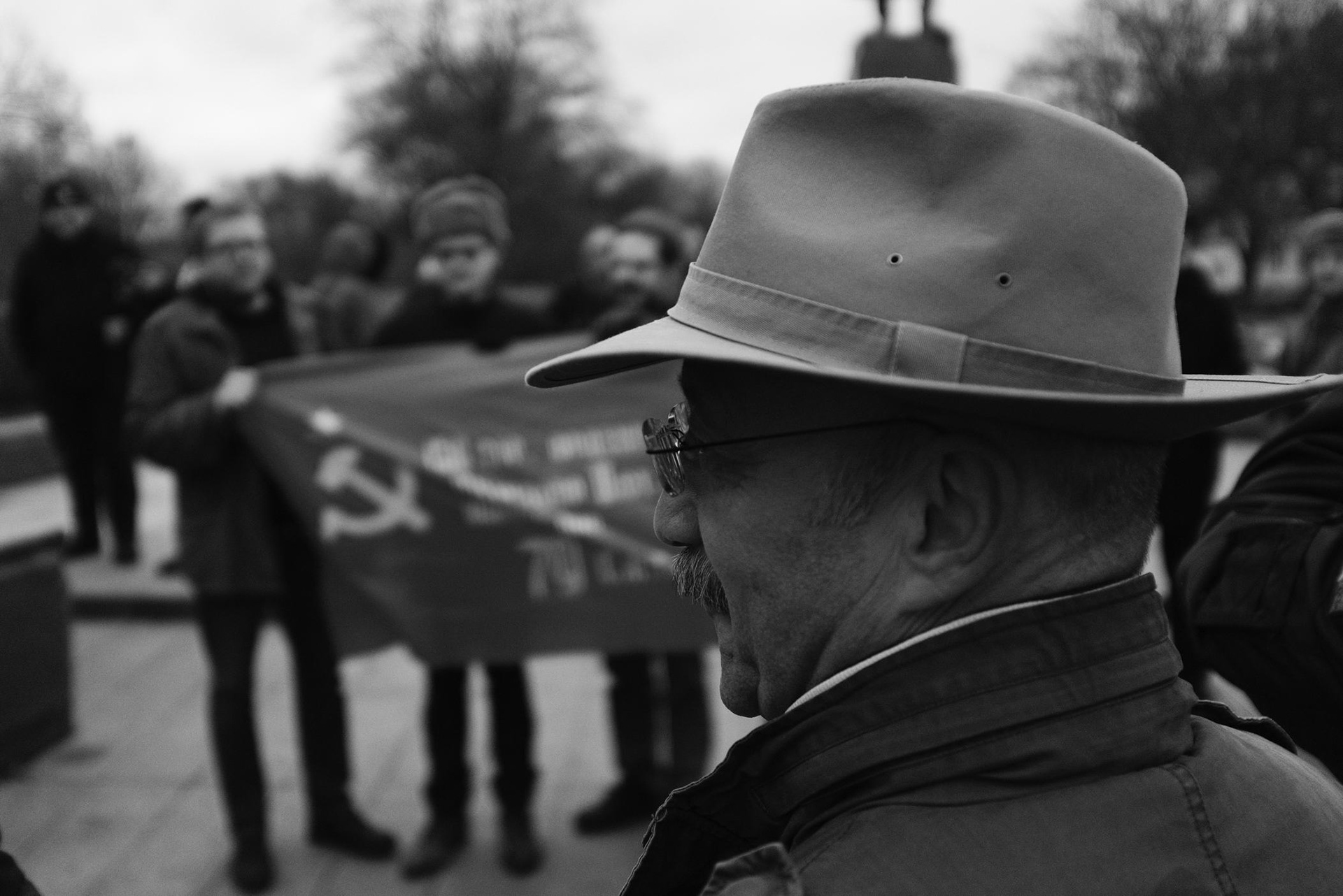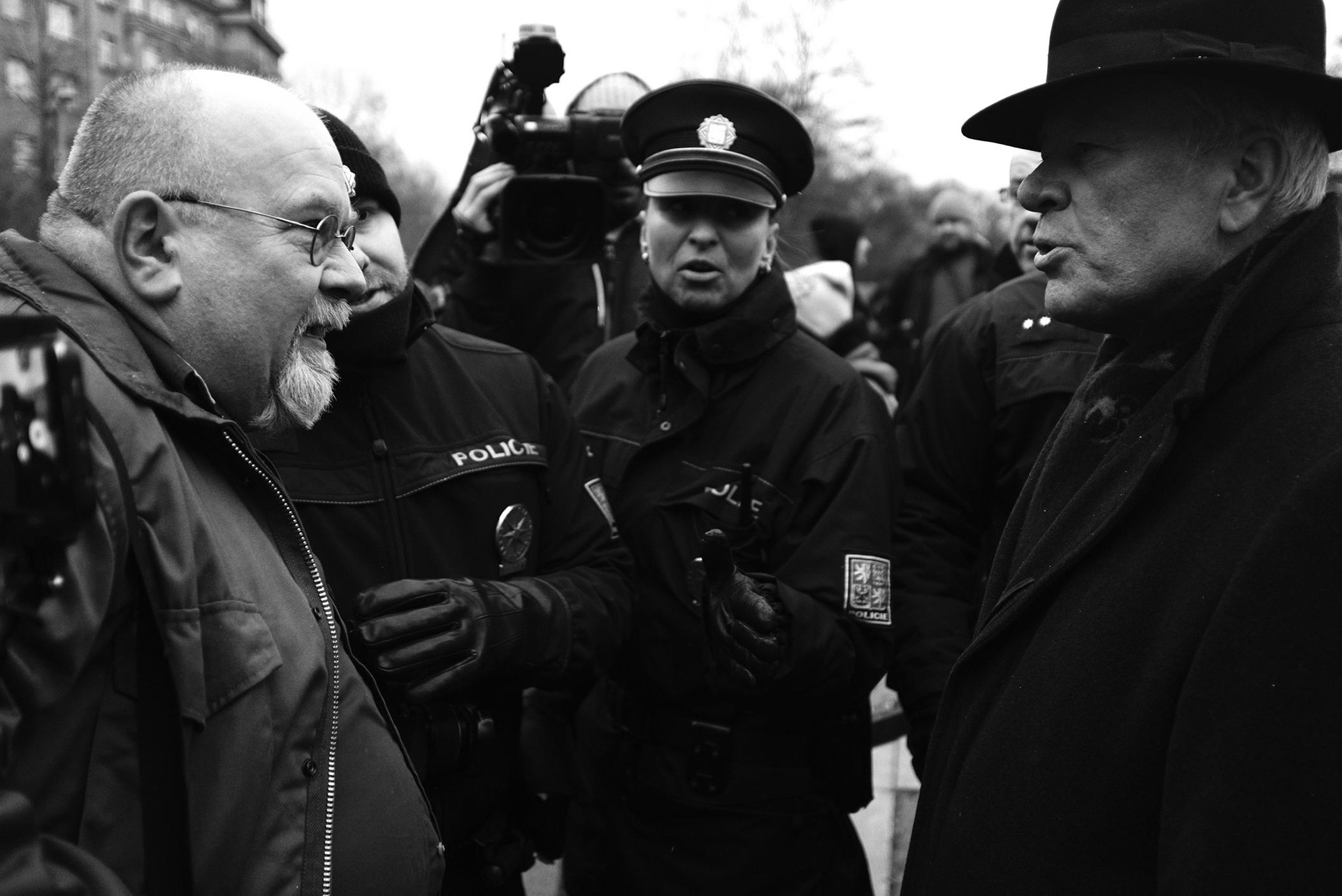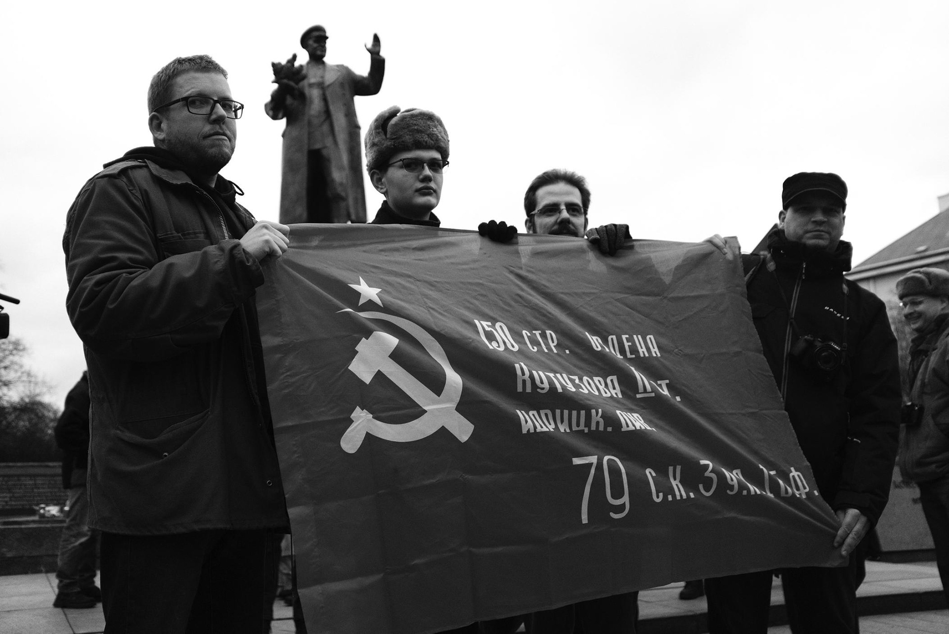People demanding the removal of the statue of the controversial Soviet Marshal Ivan Konev and his supporters met in front of the Marshal’s statue in Prague on Dec 28, 2019 on the anniversary of the Marshal’s birth.