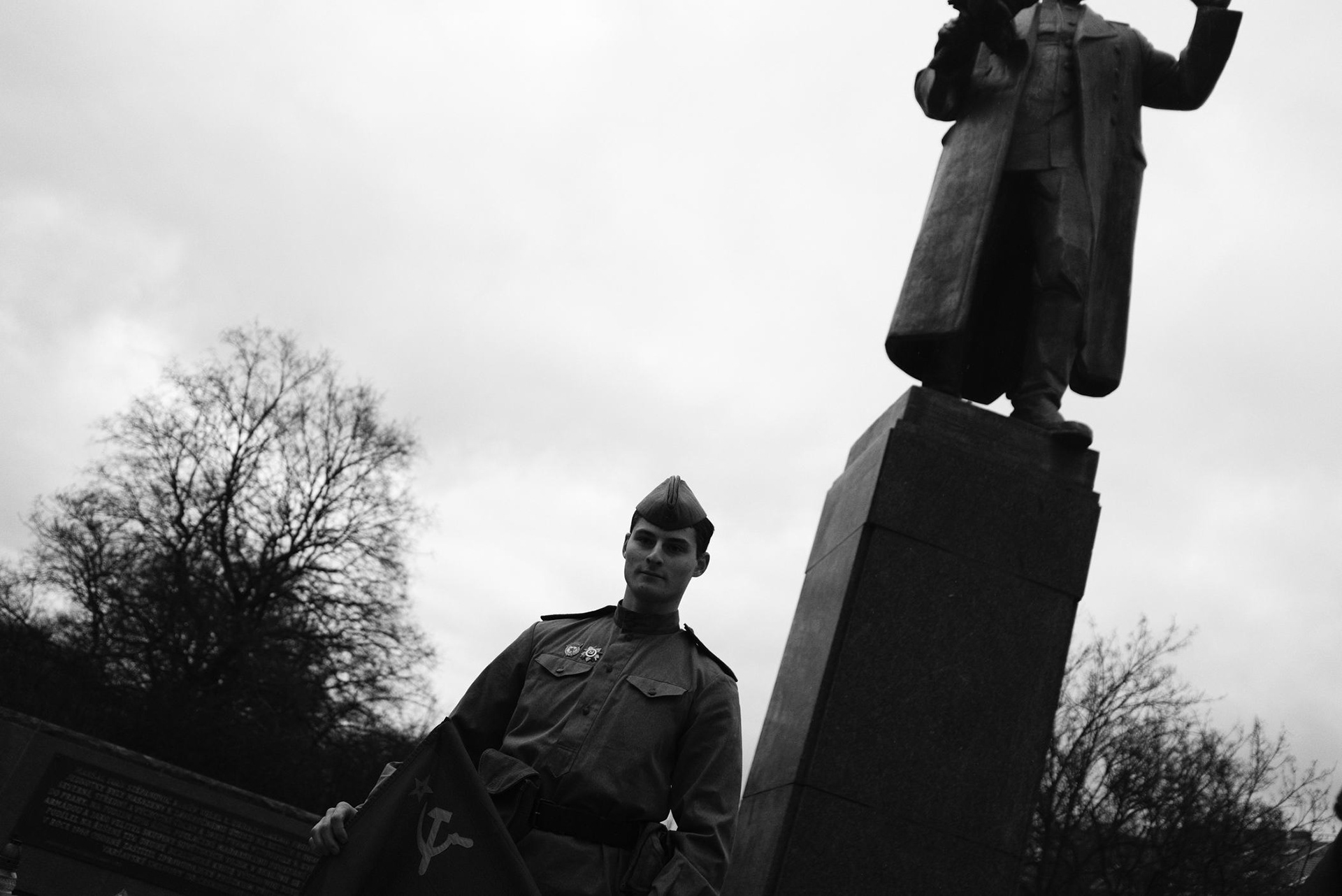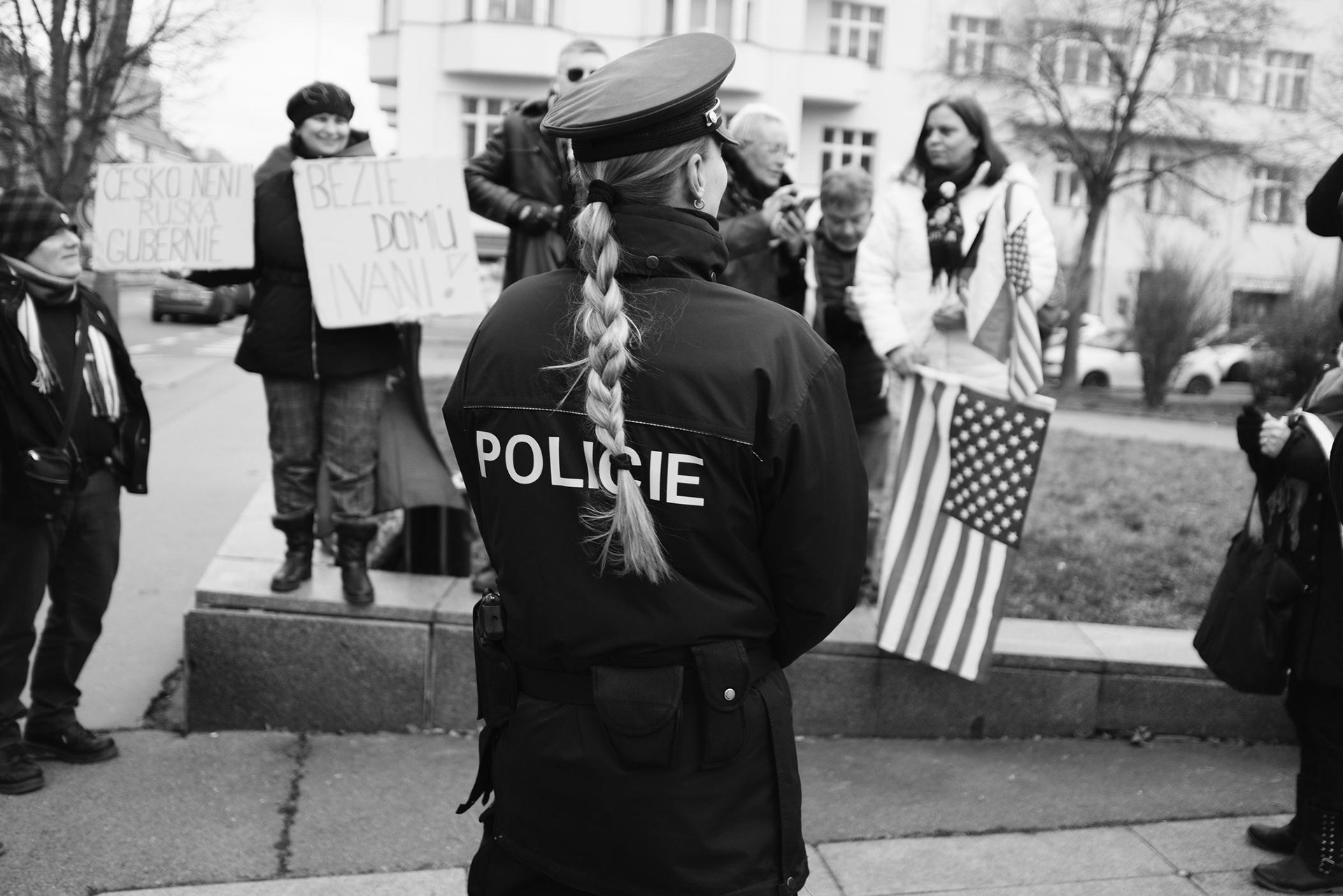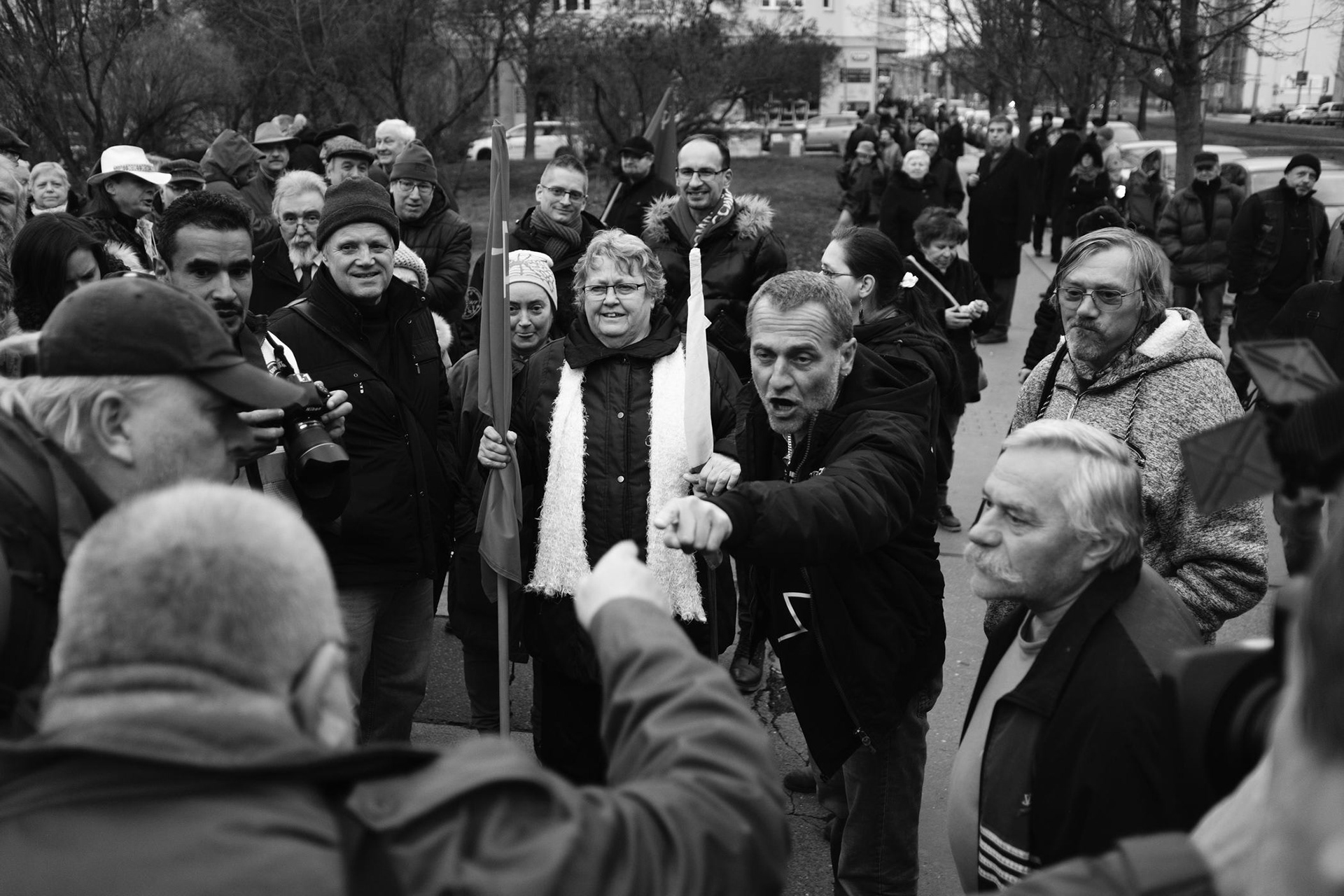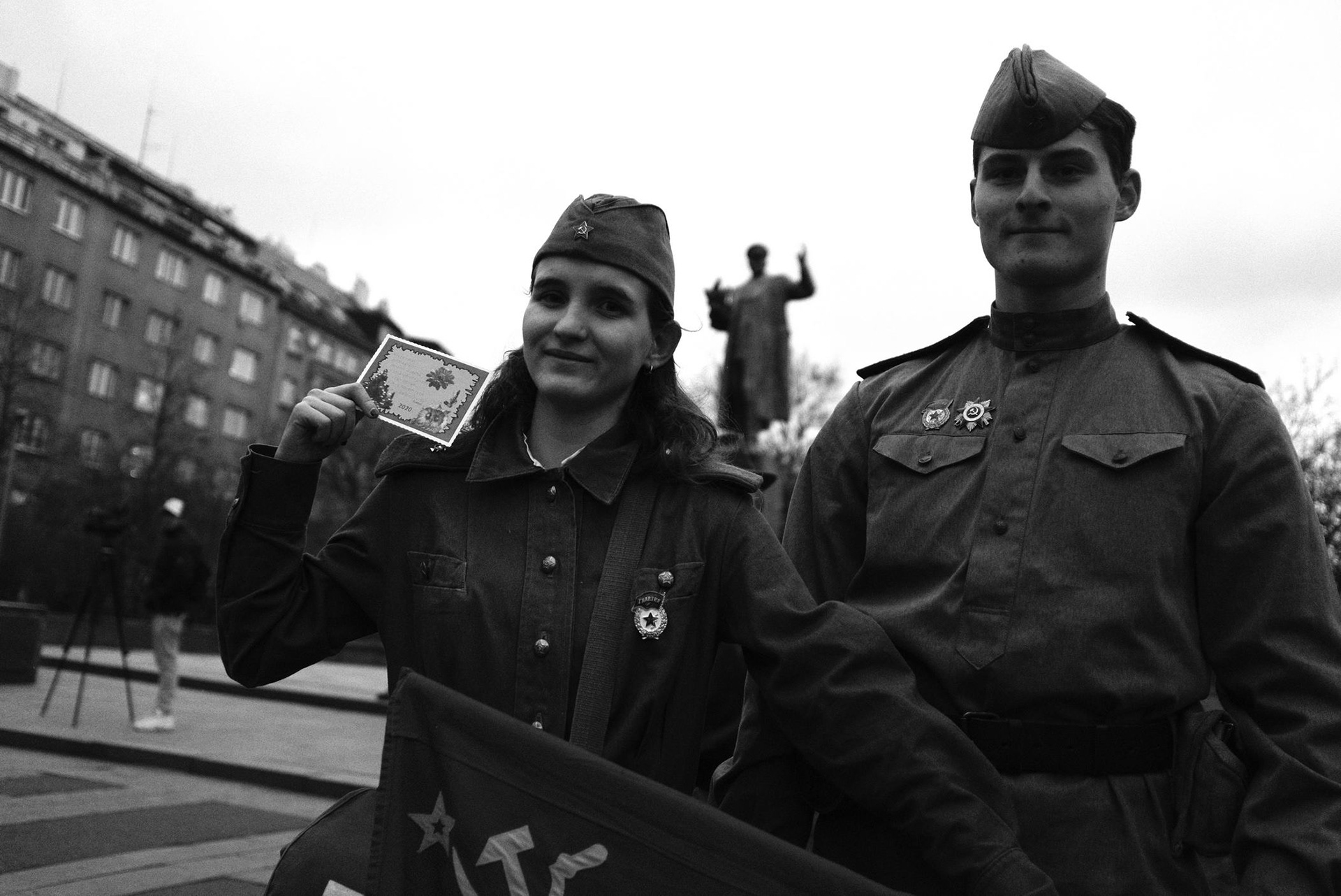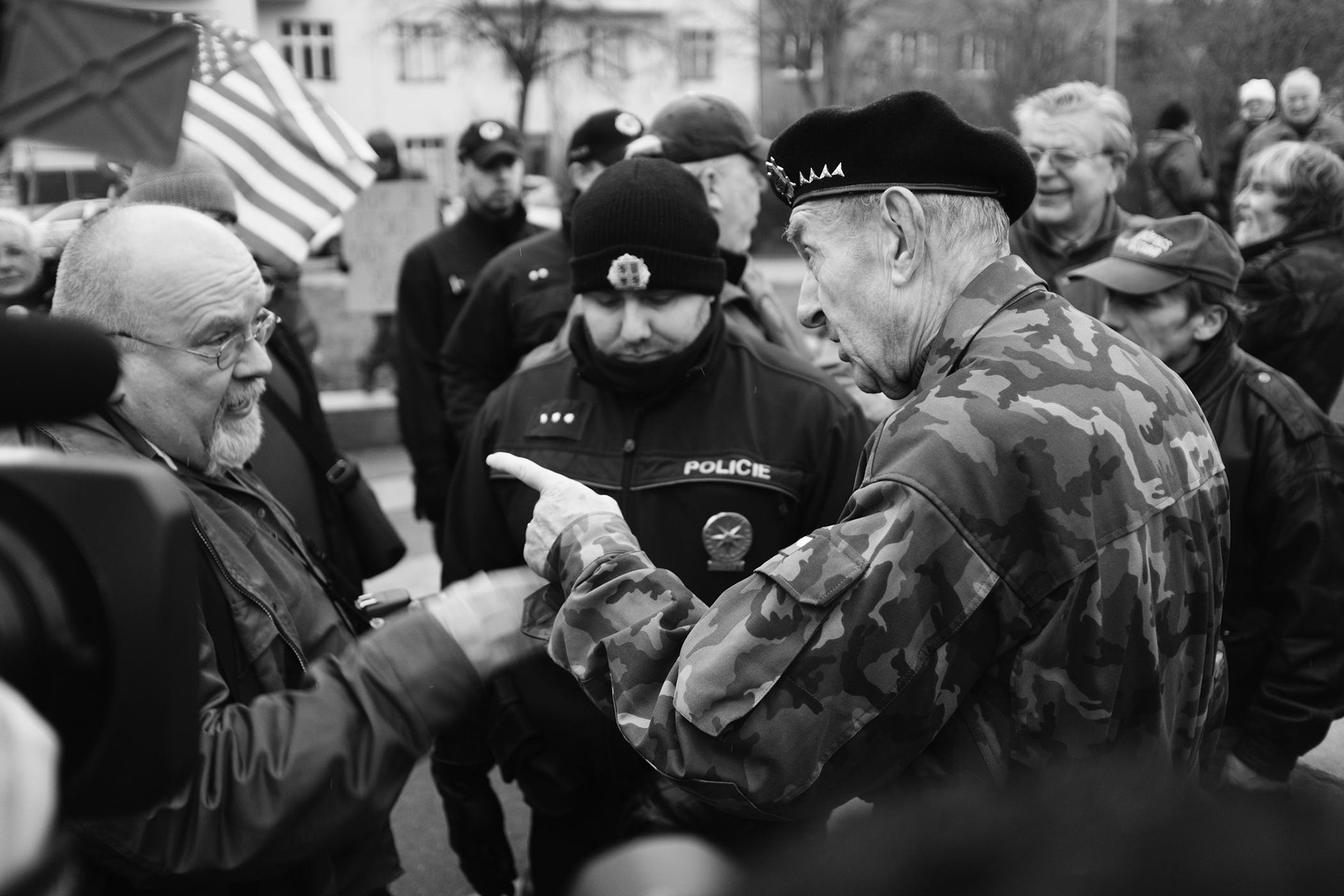 People demanding the removal of the statue of the controversial Soviet Marshal Ivan Konev and his supporters met in front of the Marshal’s statue in Prague on Dec 28, 2019 on the anniversary of the Marshal’s birth.