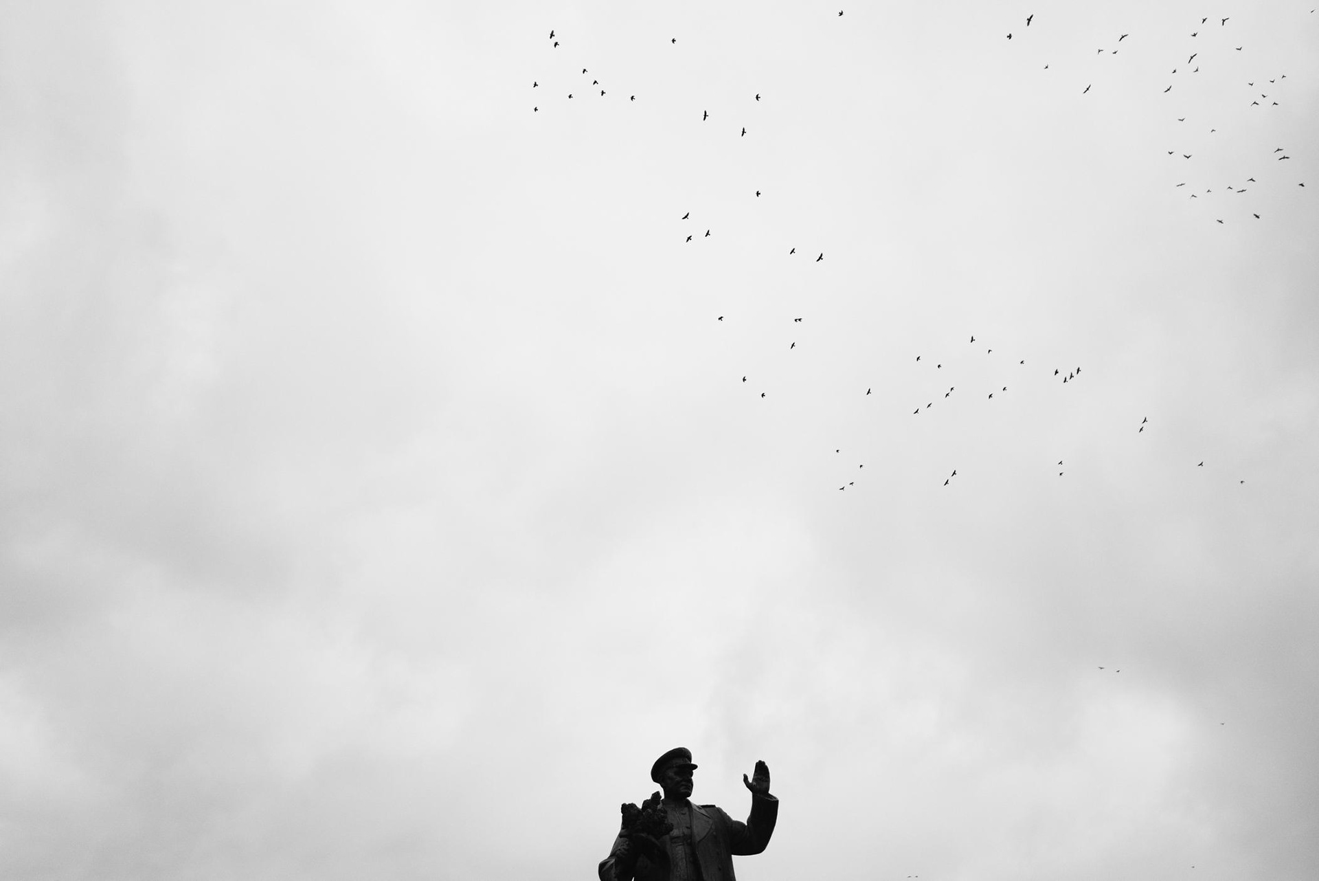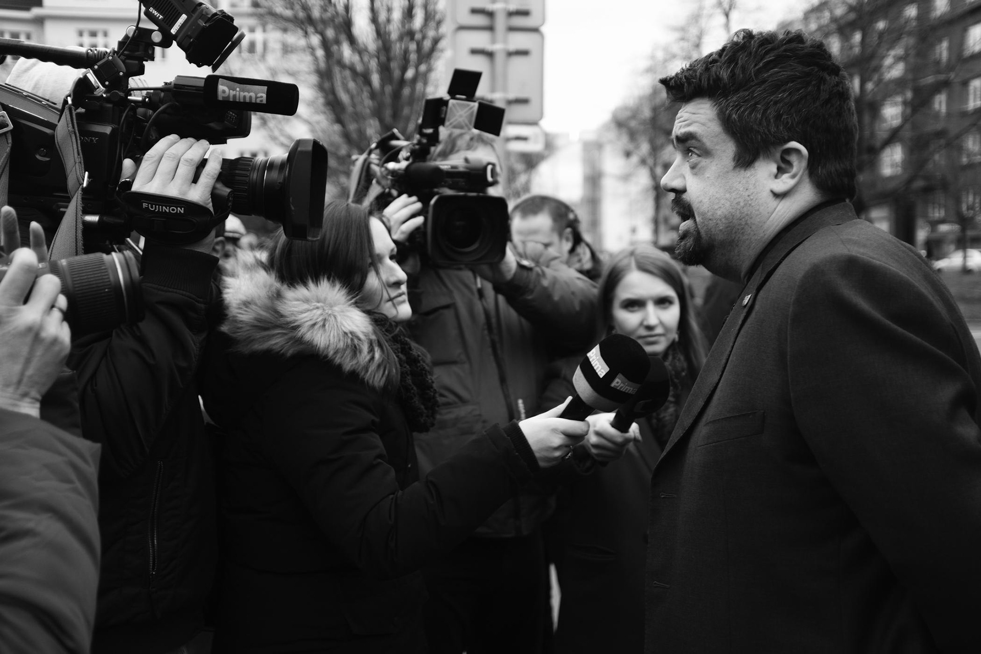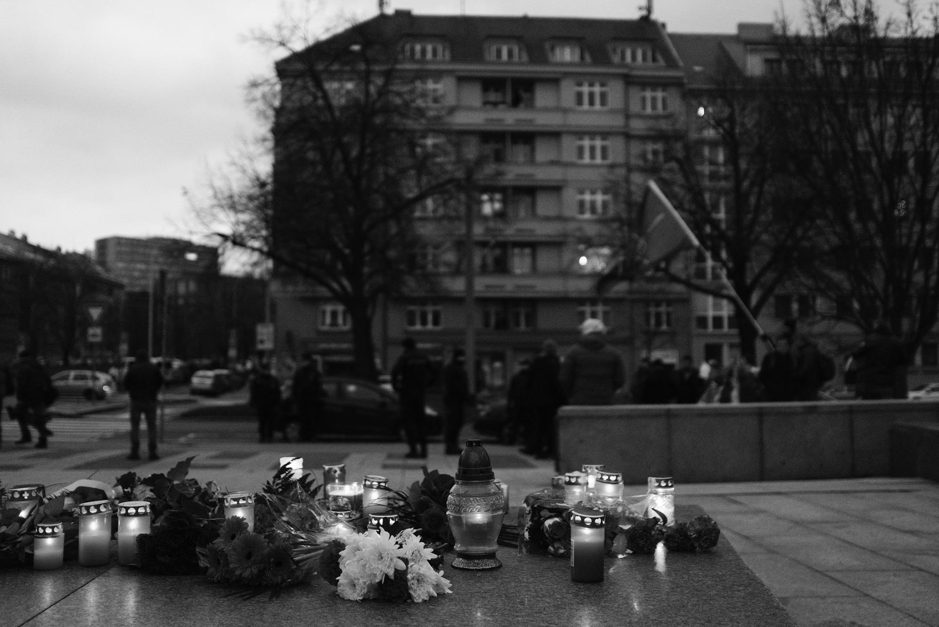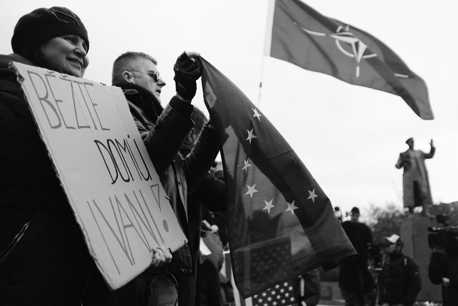 People demanding the removal of the statue of the controversial Soviet Marshal Ivan Konev and his supporters met in front of the Marshal’s statue in Prague on Dec 28, 2019 on the anniversary of the Marshal’s birth.