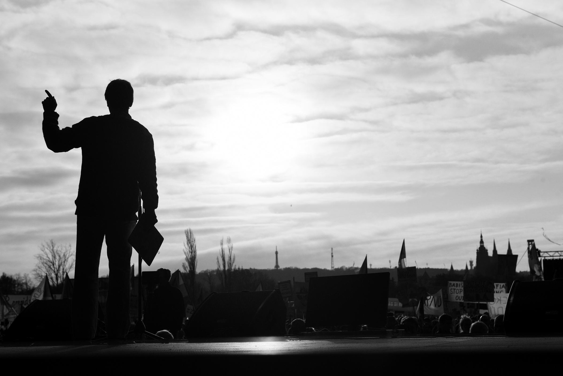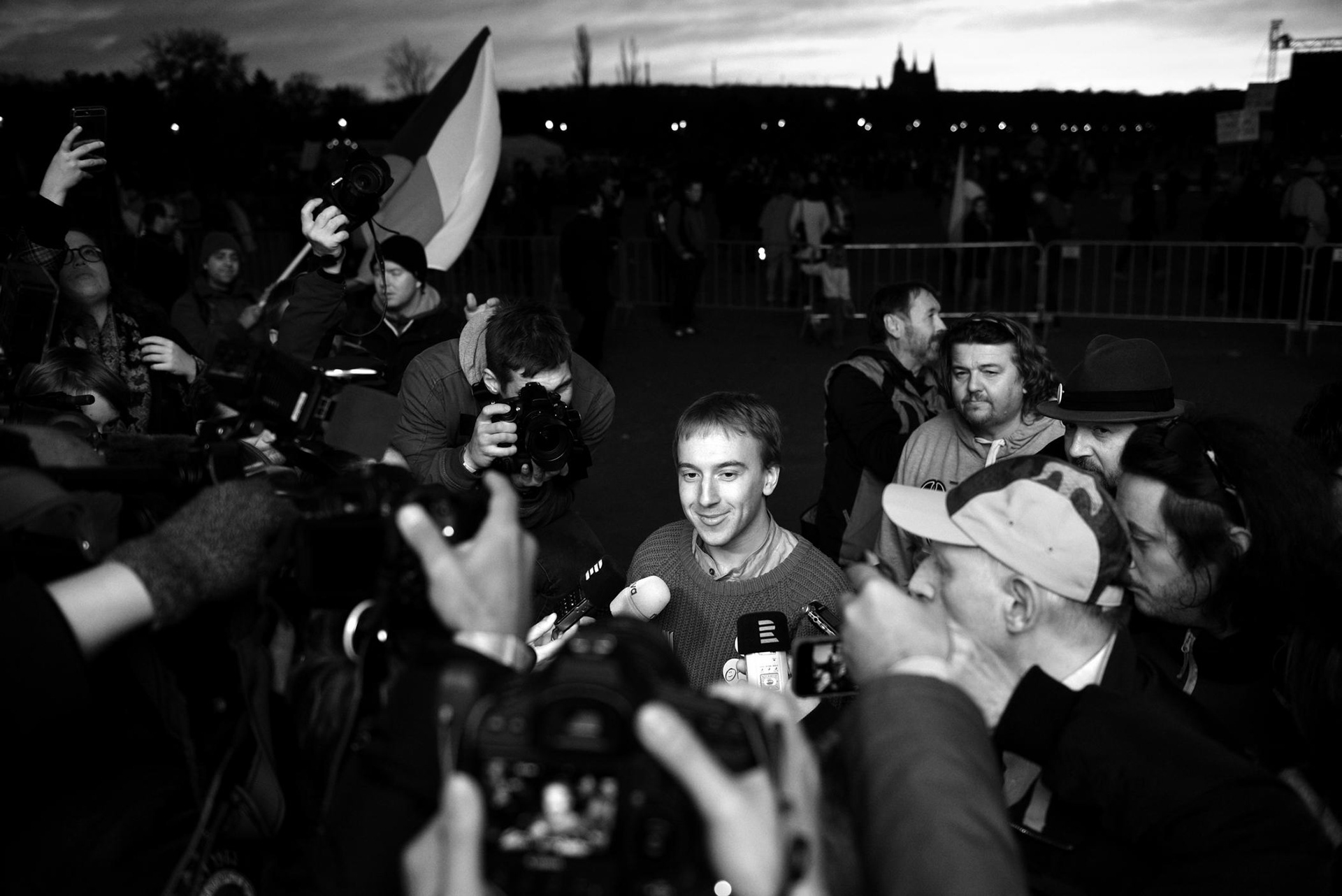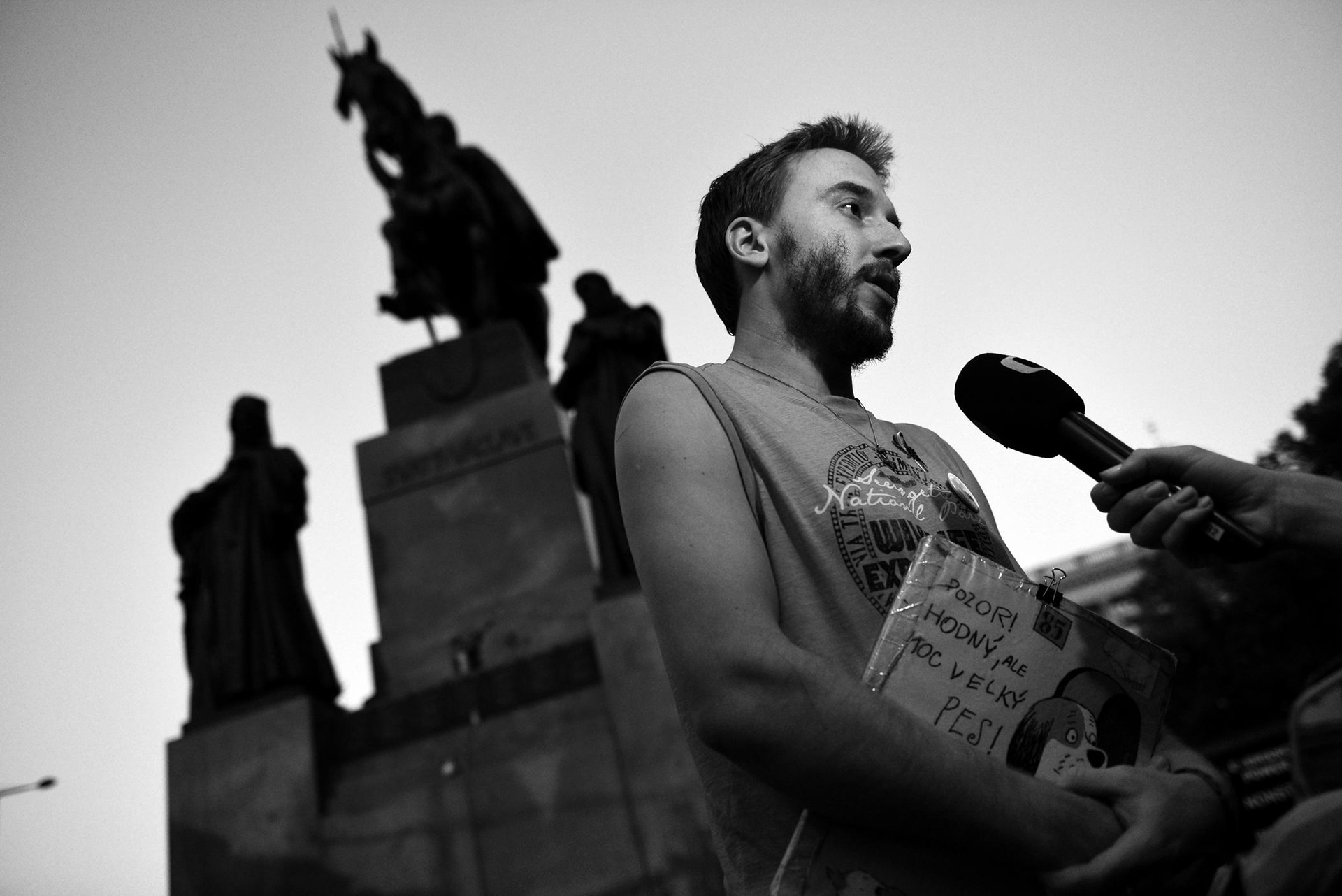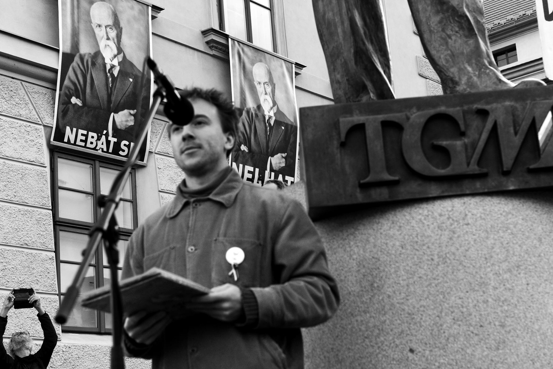 Mikulas Minar, head of the Czech Million Moments for Democracy Movement and organizer of mass rallies calling for the resignation of Czech Premier Andrej Babiš that were the largest in the Czech Republic since November 1989, attended by nearly 300,000 people in Prague’s Letná Plain.